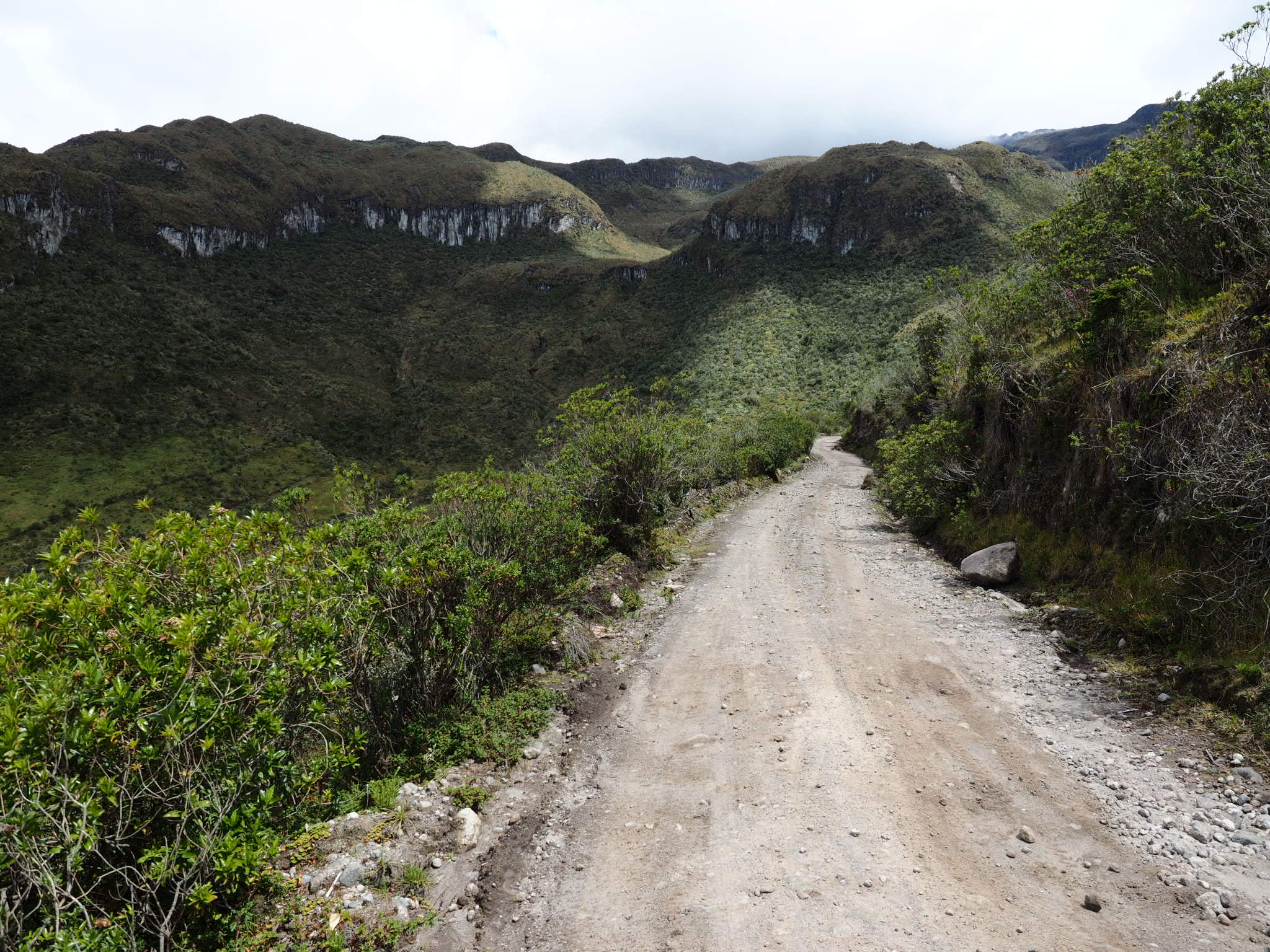 It took me about five hours to reach the entrance to the park and I was extremely hungry, having not packed enough snacks in anticipation of running into a store or restaurant on the way up. The park warden at the gate working was extremely kind and offered me some agua panela (a warm drink made from sugarcane juice) and bread. She warned the next section would be really steep, something I was bracing for based on the squiggly switchbacks on my map and the cliffs that loomed ahead. A bit more pedaling and a bit more pushing and I reached the top. My phone said I was at 4,011 metres, the first time in my life I’d cracked 4,000 metres. I celebrated by collapsing by my bike at the side of the road.