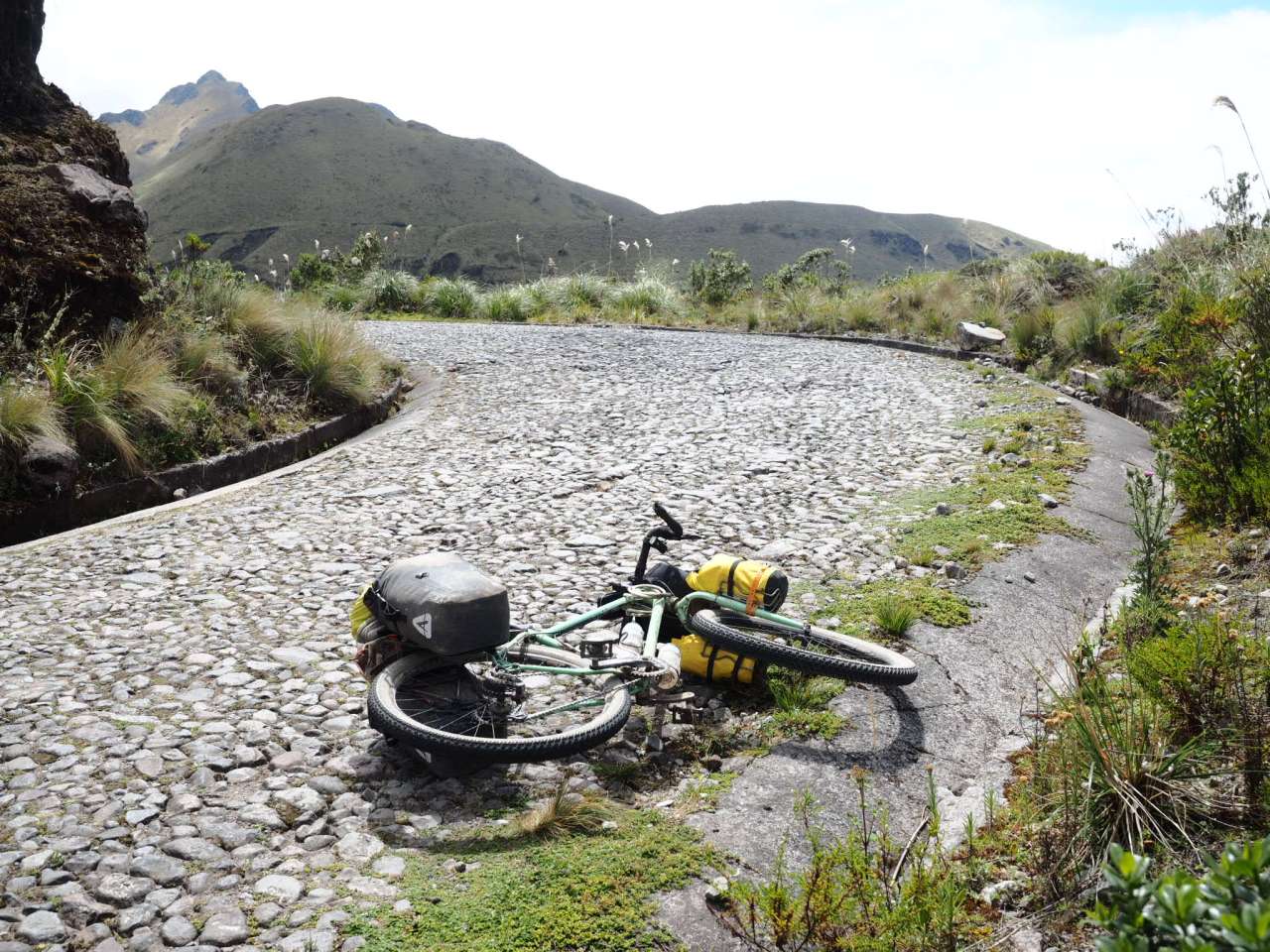 I left Otavalo on Sunday with a slightly heavier load. I had a short day planned – a 17 kilometre ride to Laguna de Mojanda and a hike to the top of Fuya Fuya, which tops out at 4,279 metres. I left the city on a steep cobblestone road that never let up. Most blogs about bike touring in Ecuador talk about the rattling these roads induce, but my Salsa Fargo handled it fine, though it wasn’t easy and progress is definitely slower on the cobblestones. I reached the lake around one and had lunch at the makeshift cafe run by local women on weekends before starting the hike up Fuya Fuya.
