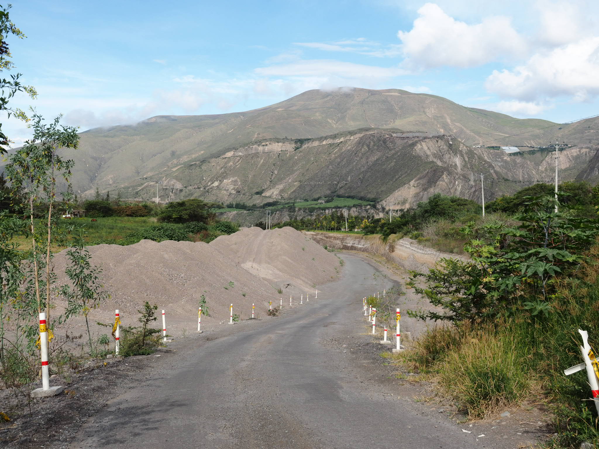 Hitting the highway meant entering an entirely new landscape. I left the wet highlands for the dry, dusty, cactus-filled inter-Andean valley. I also had to contend with a fierce headwind that nearly had me in granny gear to keep going forward. Hungry, and not seeing any roadside restaurants, I turned off the highway into the desolate town of Salinas, where I had lunch at the only restaurant, and then followed a sandy side road to Ibarra. Volcan Imbabura loomed ahead of me the whole way, but my one brief stop to take a photo led to a fierce sandfly attack so instead of taking a picture of the 4,700 metre high volcano, I kept going.
