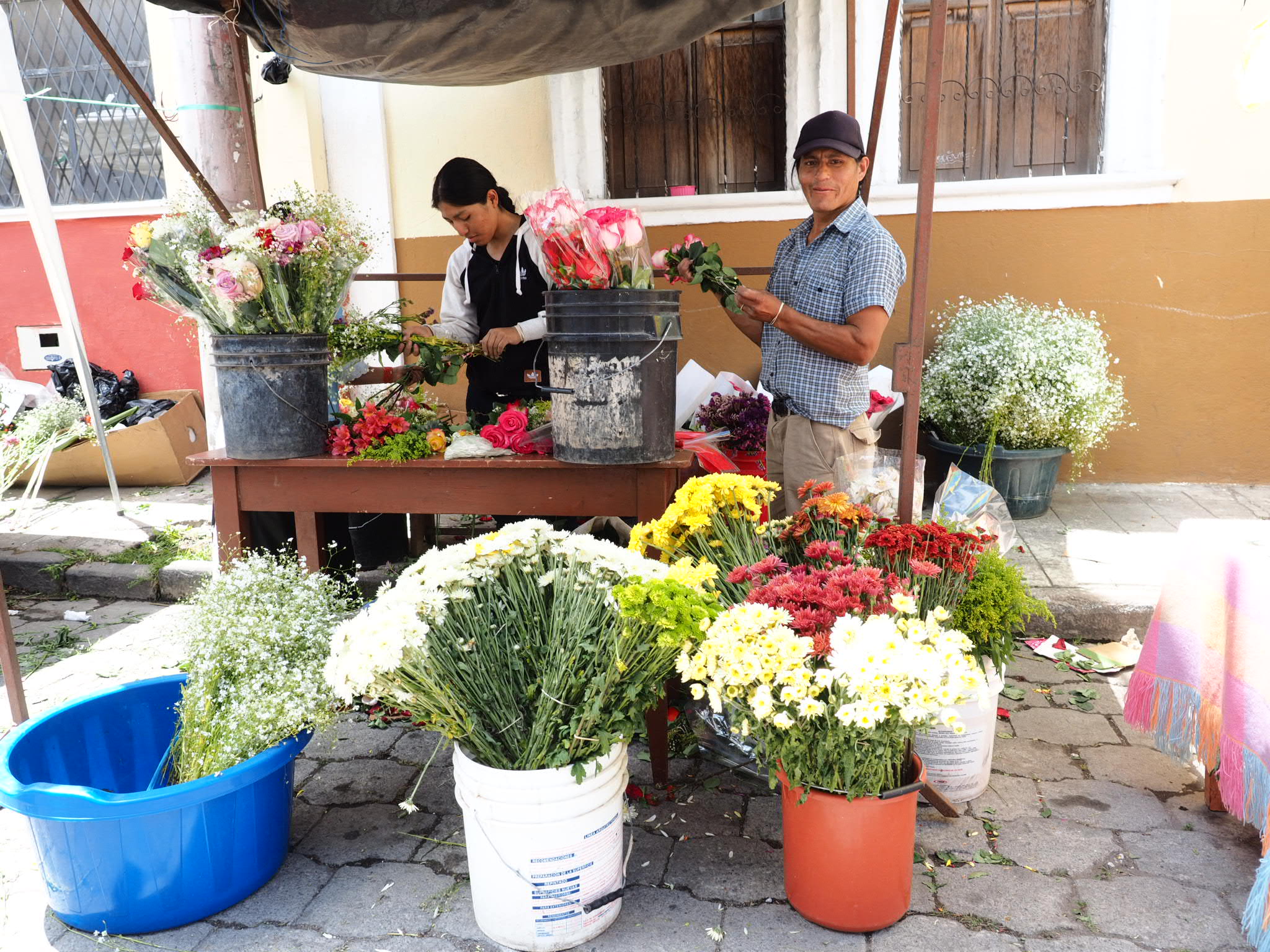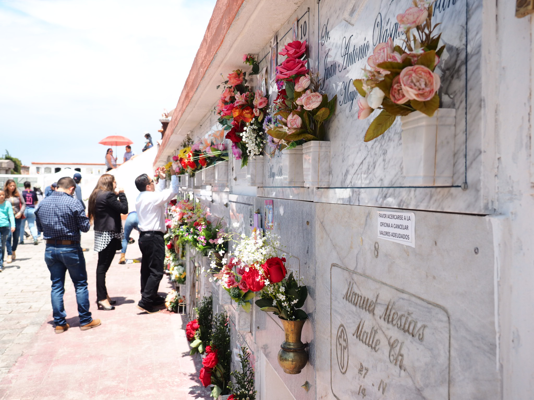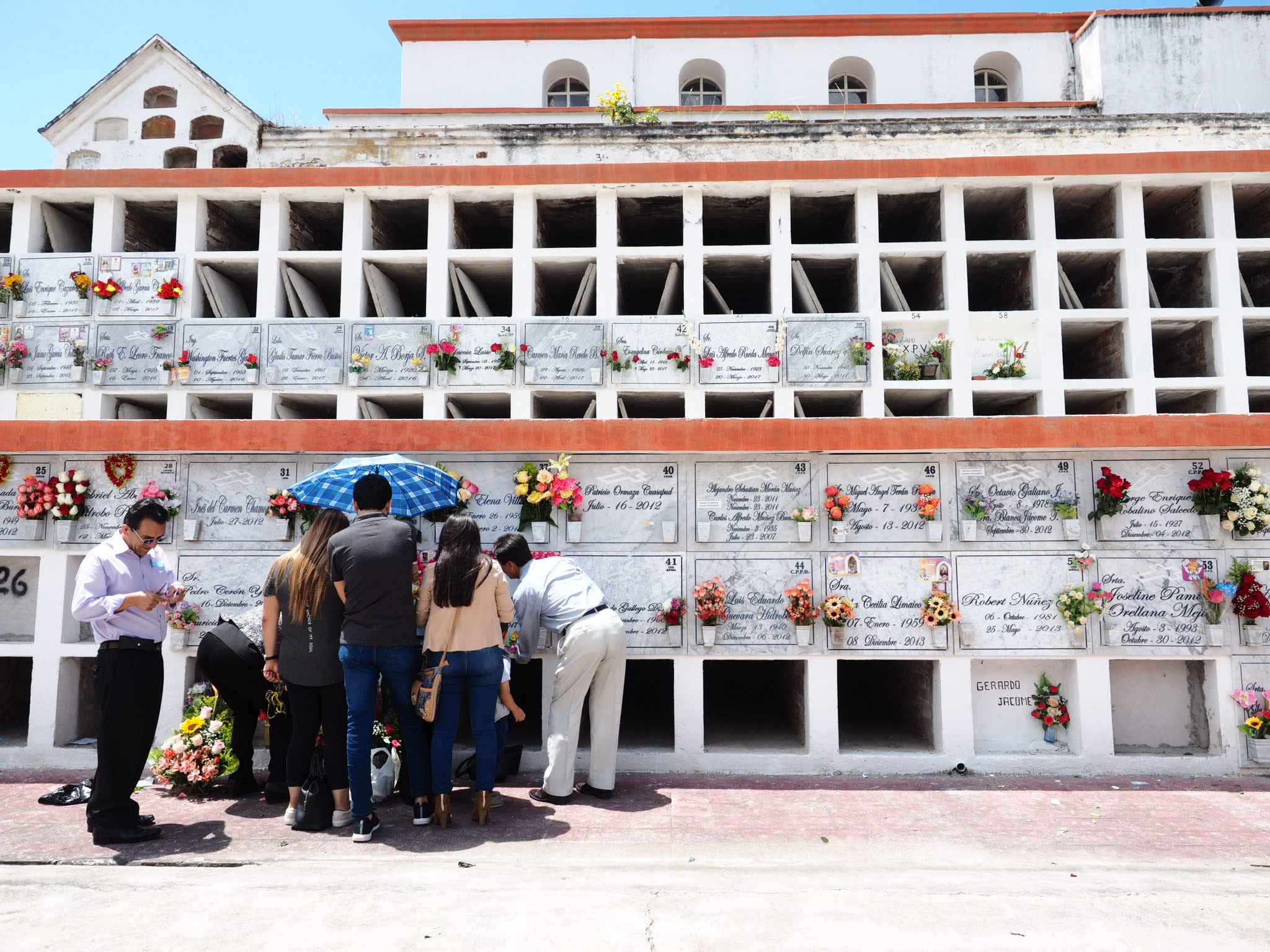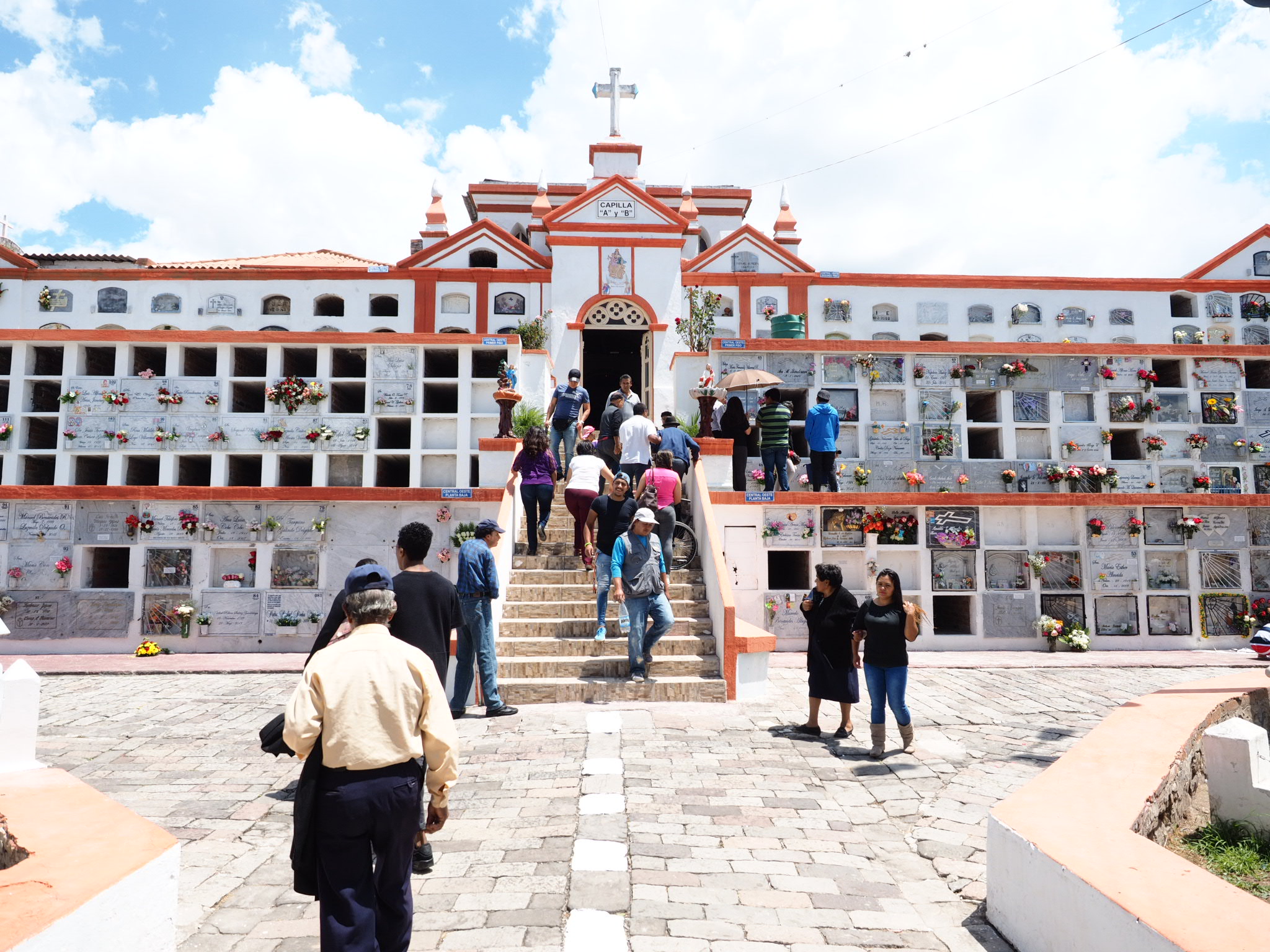 I was staying a few blocks away from the cemetery so I walked down past the food and flower vendors and wandered in. The most interesting part was simply seeing the cemetery. Instead of a big field covered in tombstones, in Ecuador the graves are stacked row upon row, one on top of another. The graves had little pockets for flowers and most were already filled or being adorned.