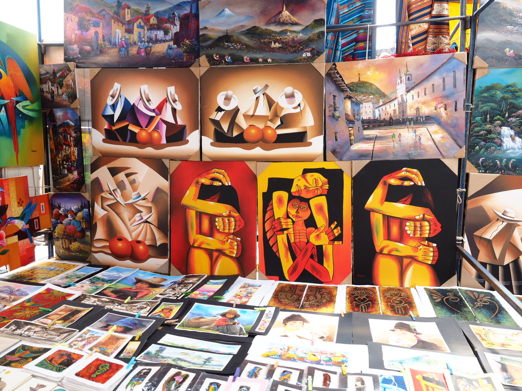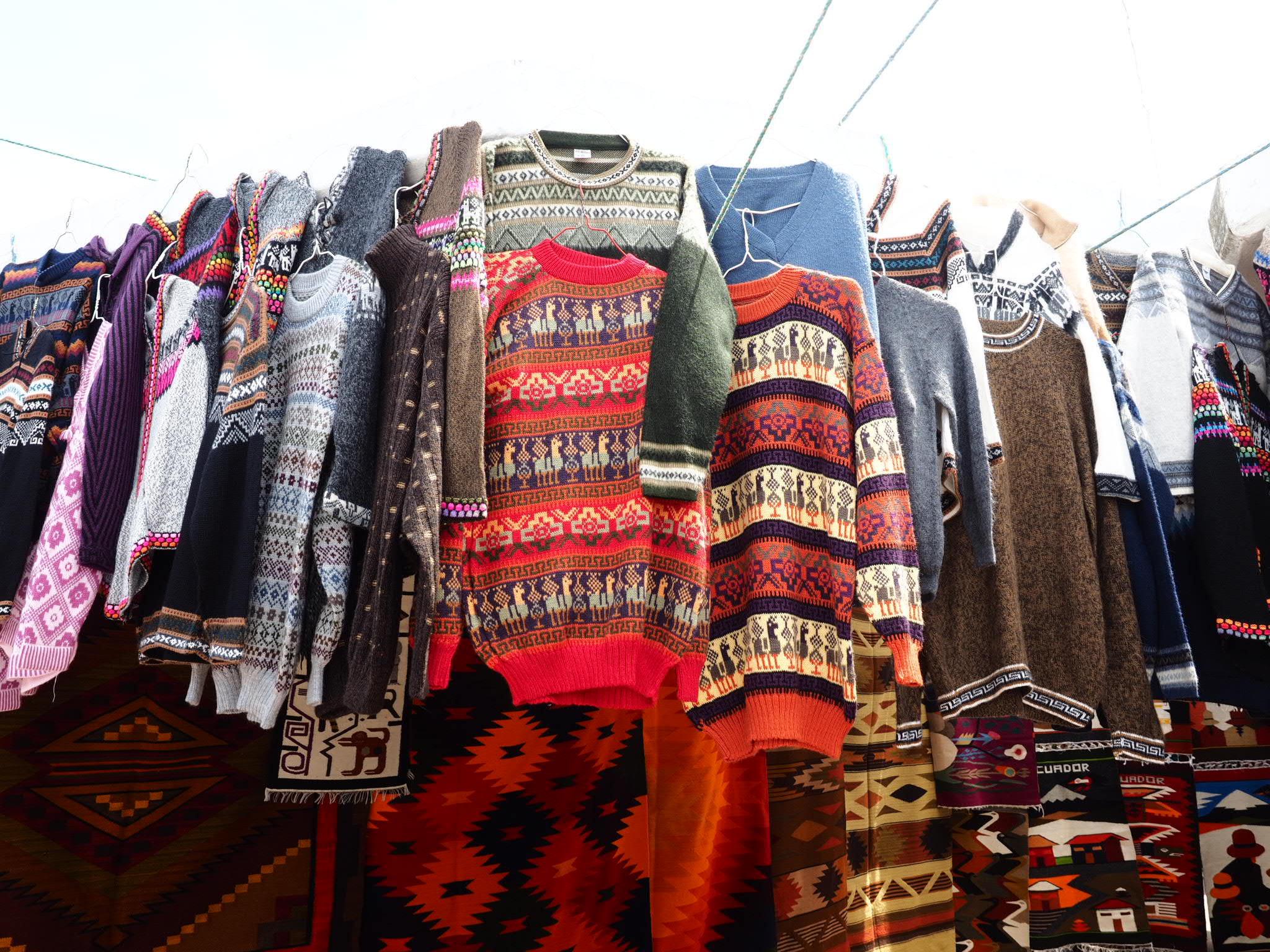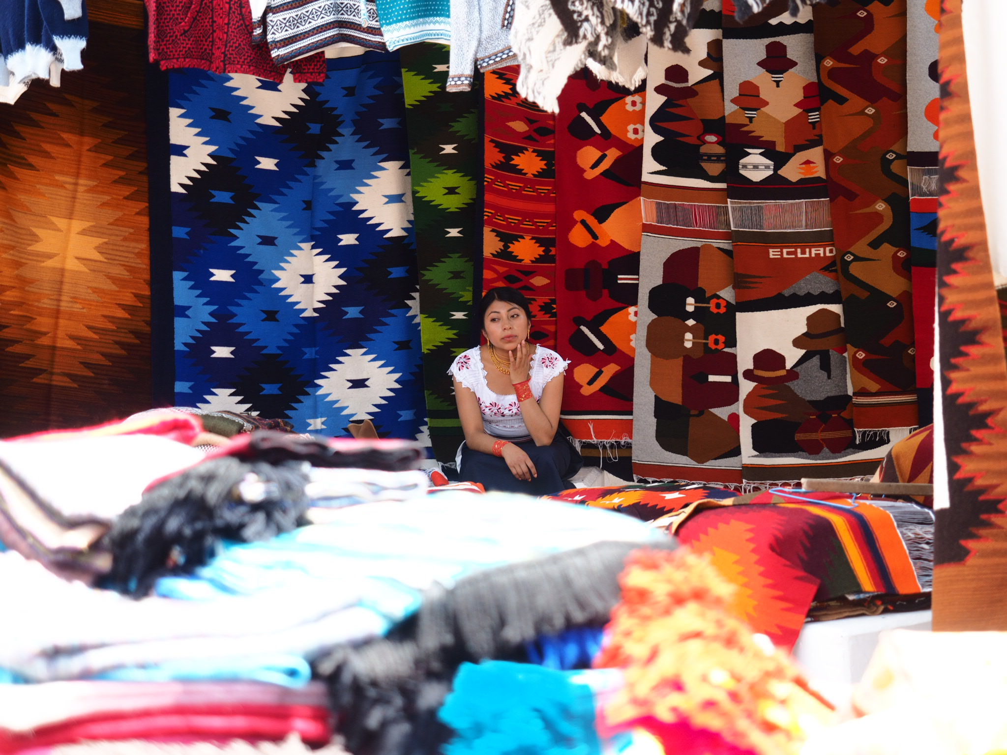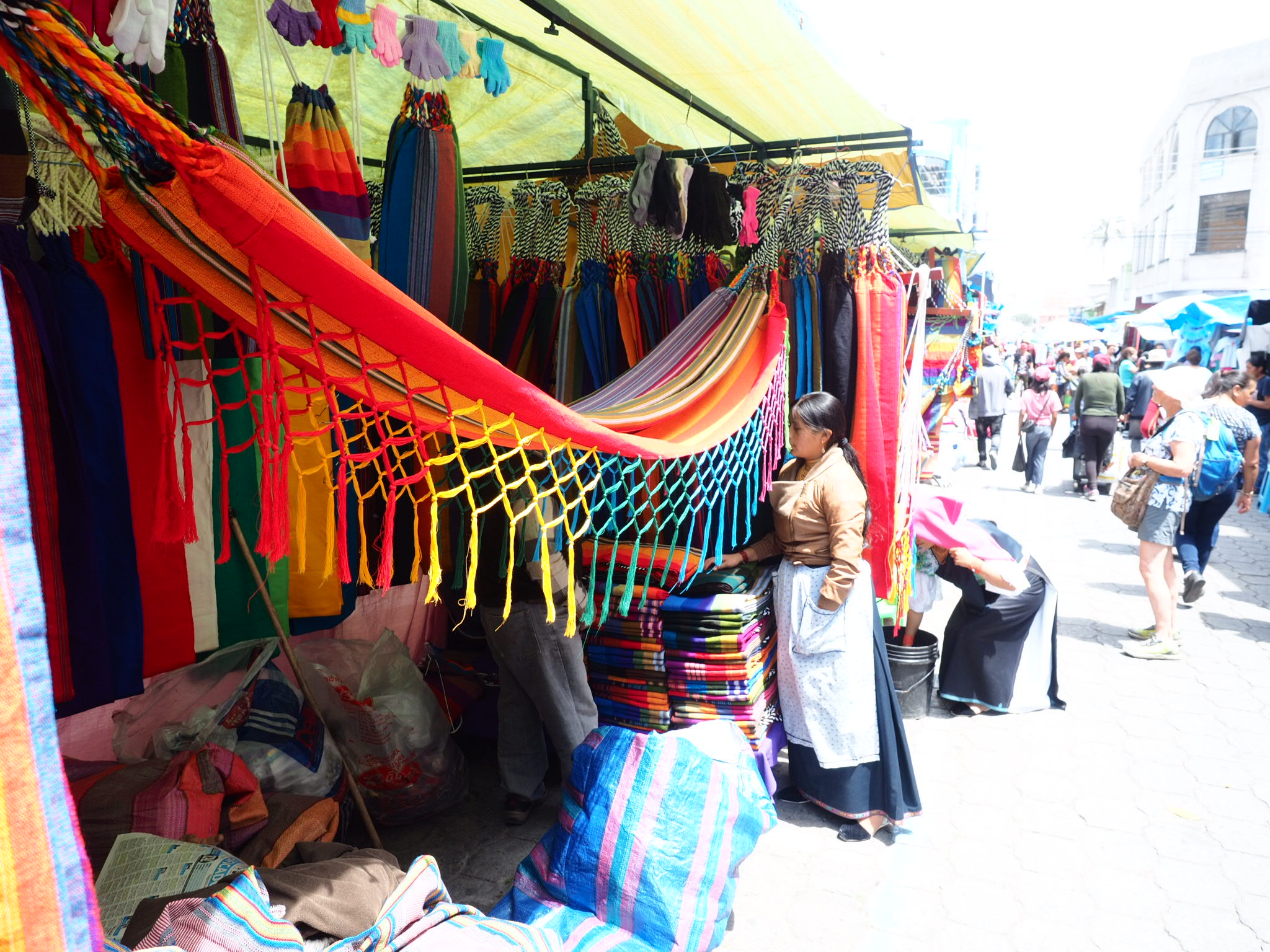I moved on to the central market, which sprawled from Poncho Plaza throughout the streets of Otavalo. Vendors sold everything from cheap cotton shirts to diapers to toiletries to knock-off shoes. But the highlight of the market, and the reason it’s so famous, were the many, many Otavalans selling traditional handcrafted Ecuadorian goods. Much of it was geared towards tourists but quite a bit was very utilitarian. The market has been in existence for eons and remains a brilliant showcase of local indigenous culture, with the women in their traditional dress and the men with their long dark hair. Despite how touristy it is, it’s absolutely worth checking out.