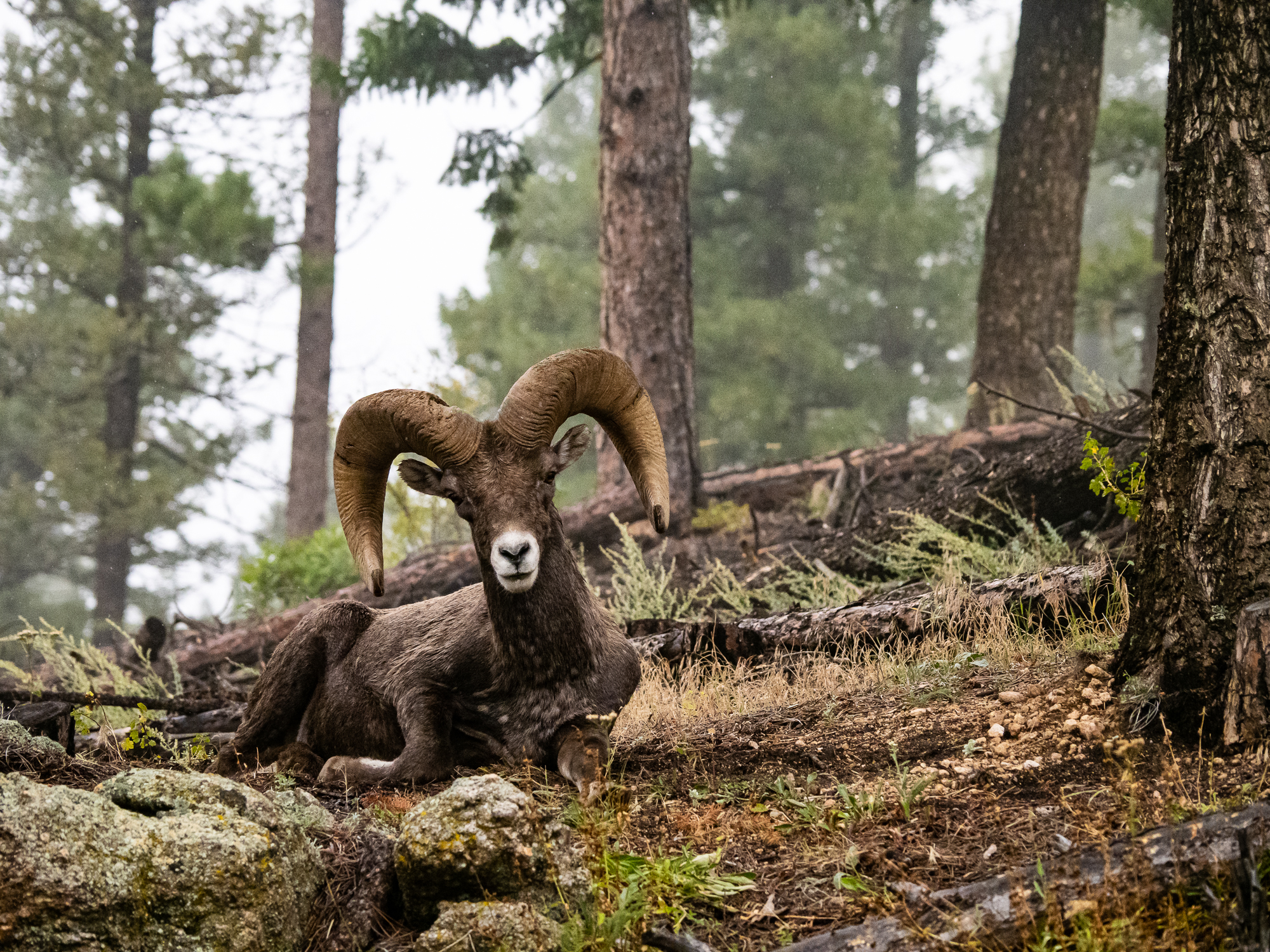 We stopped for a break at the high point only to find ourselves sharing our spot with a bighorn sheep. It peered at us curiously and cautiously while it munched on grass. I was halfway into putting on rain gear and scrambled to get moving, less it live up to its ornery reputation. We hoofed it out of there while it continued to eye us lazily. A pretty fast descent brought us down to the South Platte River and the start of Segment 2.