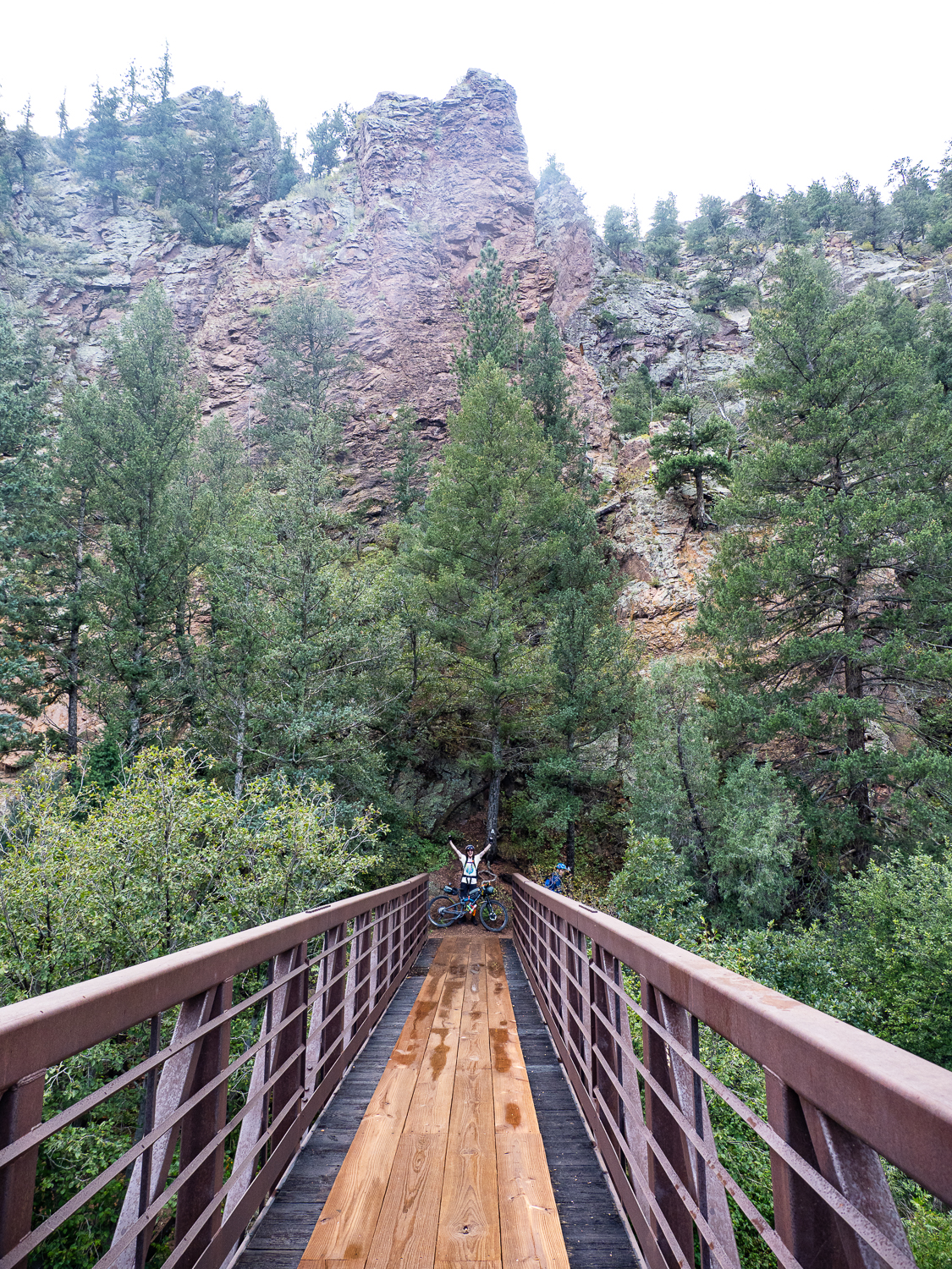 The official CT route down to Breck involved a long descent, a 350 m climb, then another long descent with about 200 bonus climbing metres thrown in. With Dru needing to get to a bike shop, opted for a more direct route that cut out the big climb for a trail called Galena Ditch. That would get us to the valley, where we could follow the bike path into town. Unfortunately for Dru, the first downhill was an endless rock garden; I didn’t envy Dru riding it without a shock. With one, it was a blast, as I let my bike crash through the endless melon-sized rocks. Galena Ditch was an easy cruise along the hump of long dredging piles, remnants of Breckenridge’s mining days. We got to town and Dru went to find a bike shop while Russ and I checked into the Bivvi Hostel.