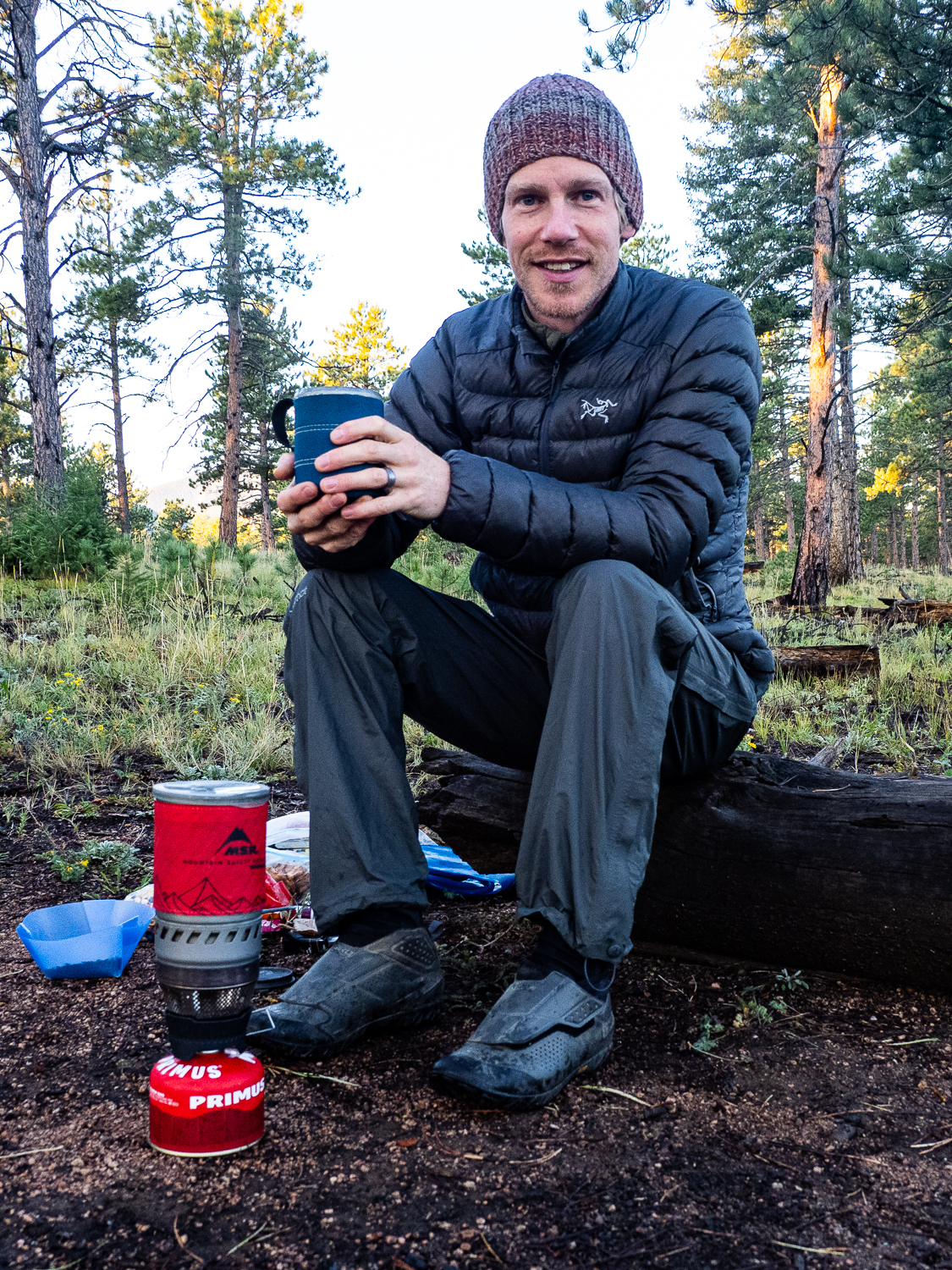 Russ and I were sharing a tent and we quickly developed a system for the morning. Around 6:30 am, one of us would let the air out of our sleeping pad, and that would be the signal to get moving. We would pack up everything inside the tent so we could hang up the fly to dry while we ate breakfast. This system served us well.