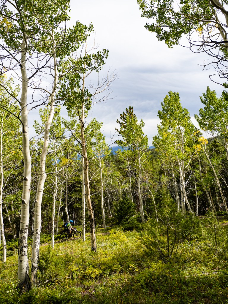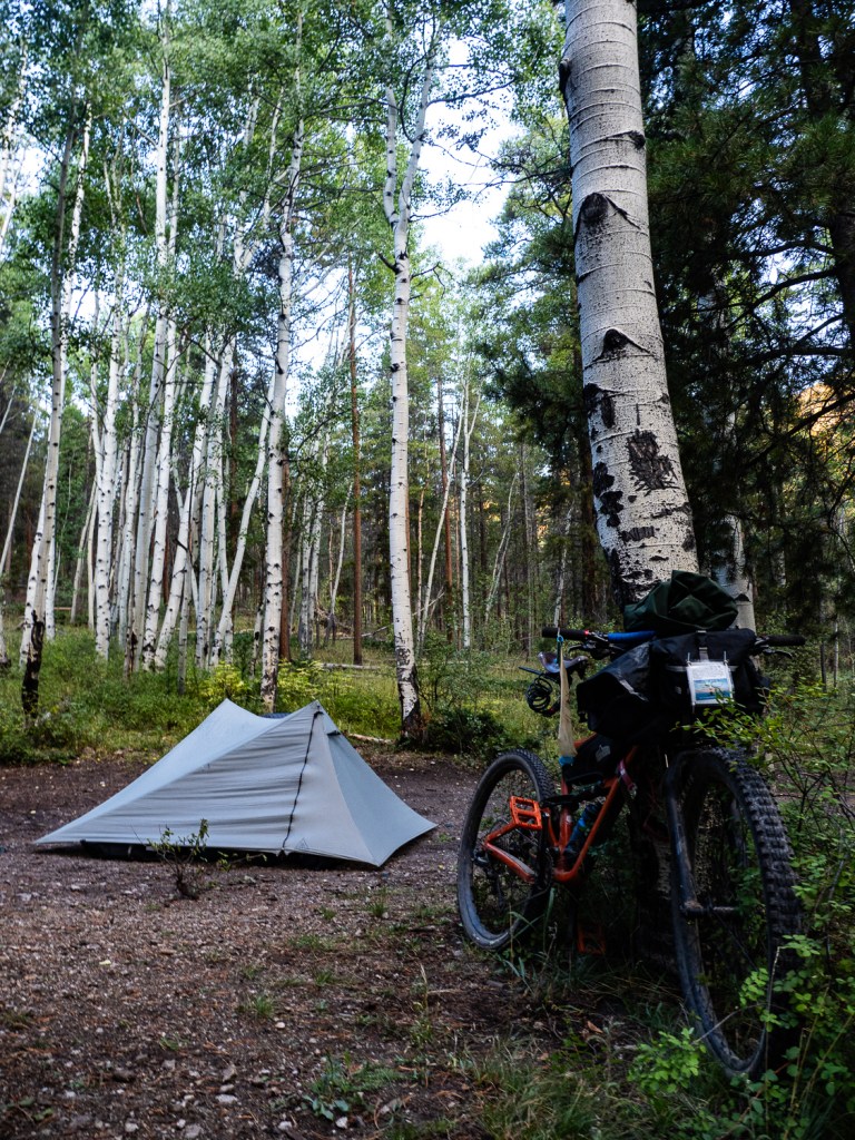 If I were to do the CT again, I would skip this section. Beginning with a steep hike-a-bike, it was 32 km of rocky, rooty, undulating terrain. For my Revelstoke readers, picture Tantrum, but six times longer. There were some fun bits where the trail flowed through twisting columns of white and green aspens, but mostly it was an interminable slog that took almost six hours By the time we exited to Highway 50, the thought of climbing another 700m to Monarch Pass had long been extinguished. Instead, we found a campsite by Foose Creek a few kilometres up the trail.