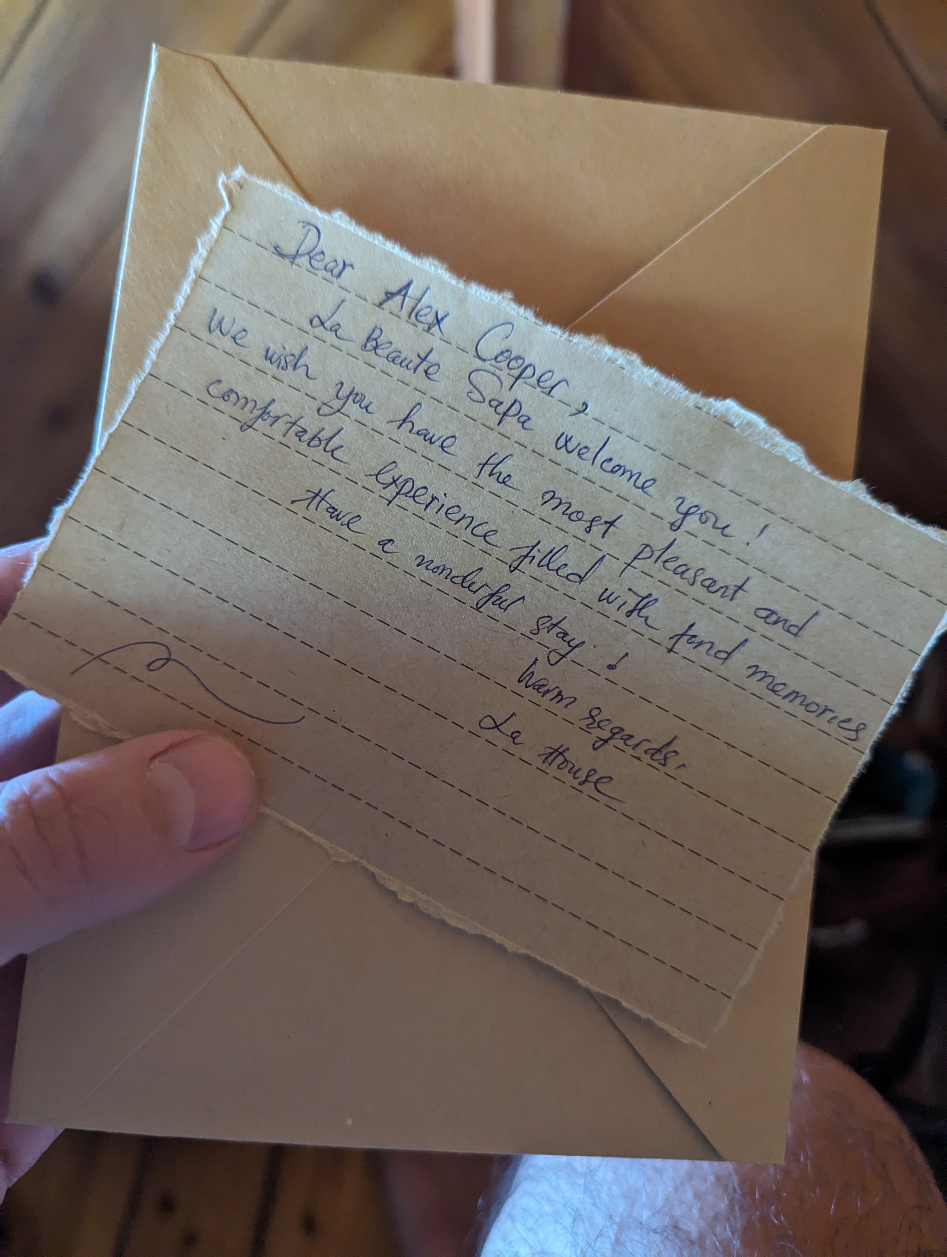 La Beaute Homestay was nice but creaky. There was great views down the valley and lots of cute cats and dogs to pet. There were a few other guests, but no one was all that social.