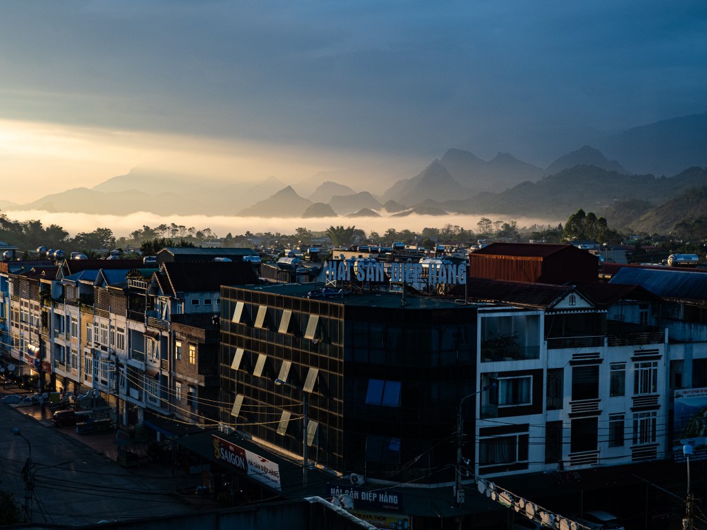 I woke up to another foggy morning, only this time, I was above the clouds. From the top floor of my hotel, I could gaze out over the incredible sunrise above the misty streets and mountains. I enjoyed a banh mi sandwich along one of the lakes in the centre of Lai Chau and headed out of town on DT128. My goal was Sin Ho, a village that sits at a lofty 1,600 m elevation. In my way was two big climbs and one long downhill.