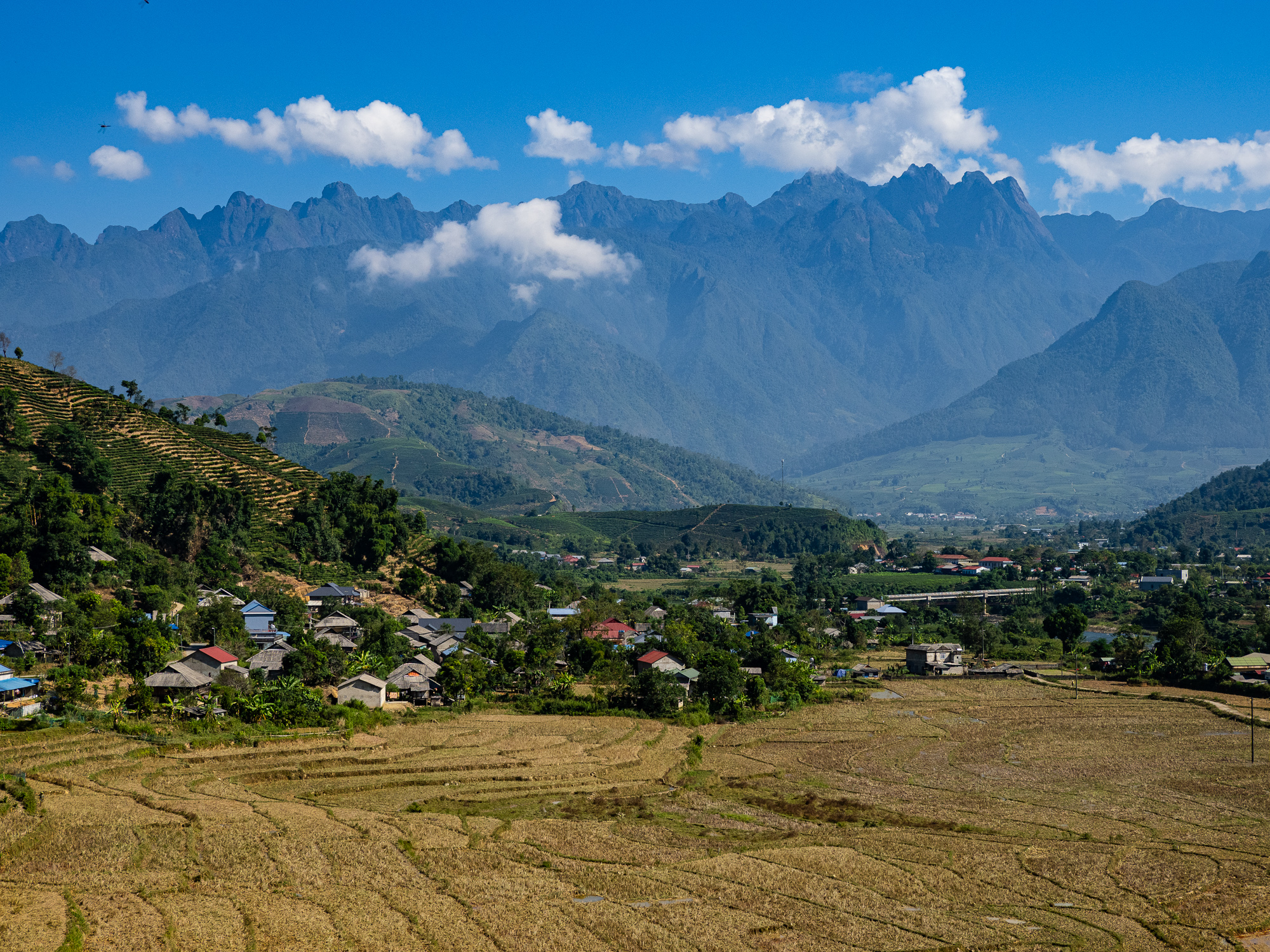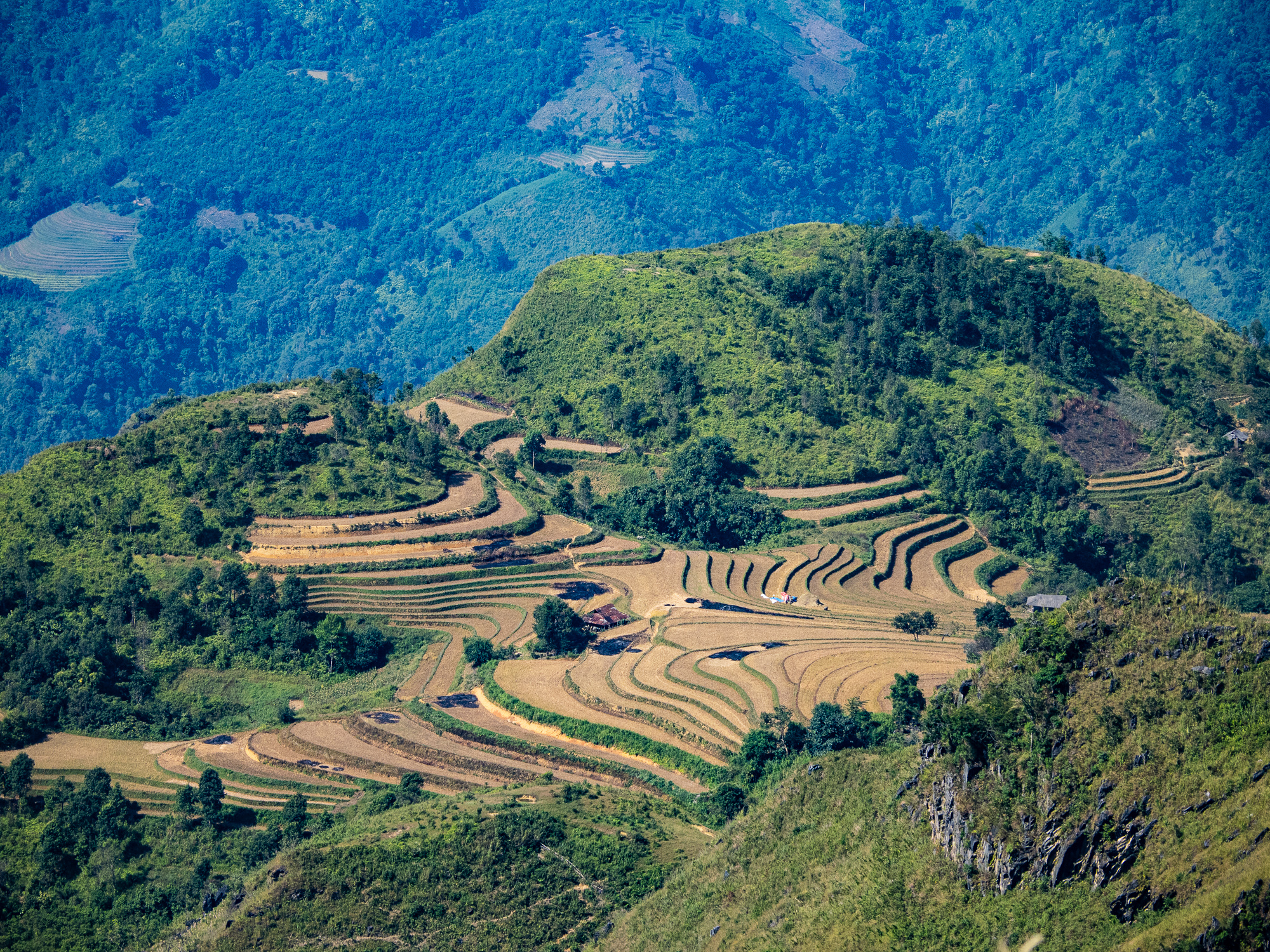 I crested the first pass and descended into a remote valley, this one sculpted by rice terraces. Even though the harvest was over, this valley was incredibly photogenic. This Is what I envisioned when I imagined rural Vietnam. I passed through several small villages and was chased by kids, though they kept their distance when I stopped to buy some beverages and a snack at a local store; I arrived too late to get a proper lunch. I would discover that lunch in these remote villages was served at a certain time and if you missed it, you were out of luck.