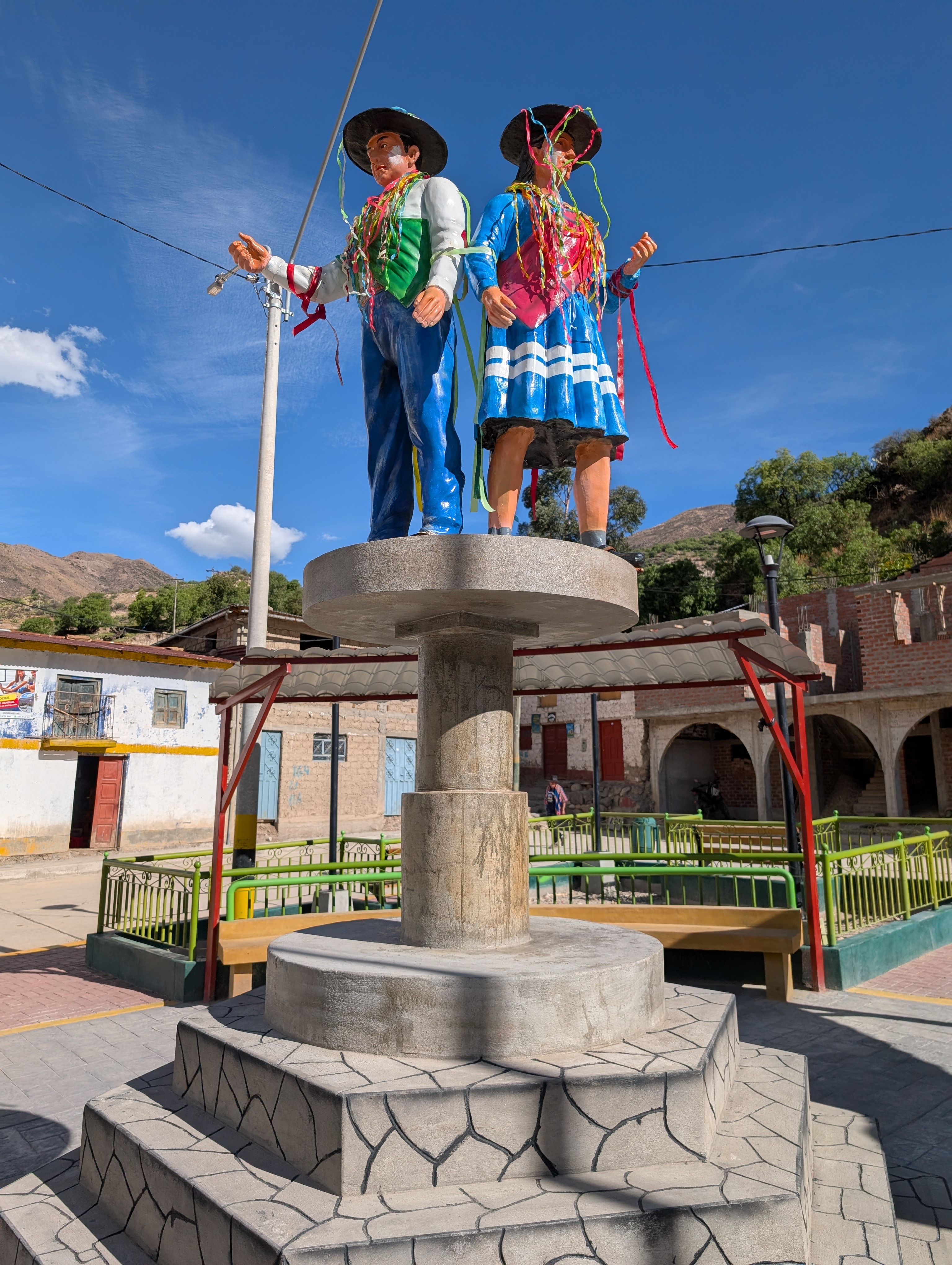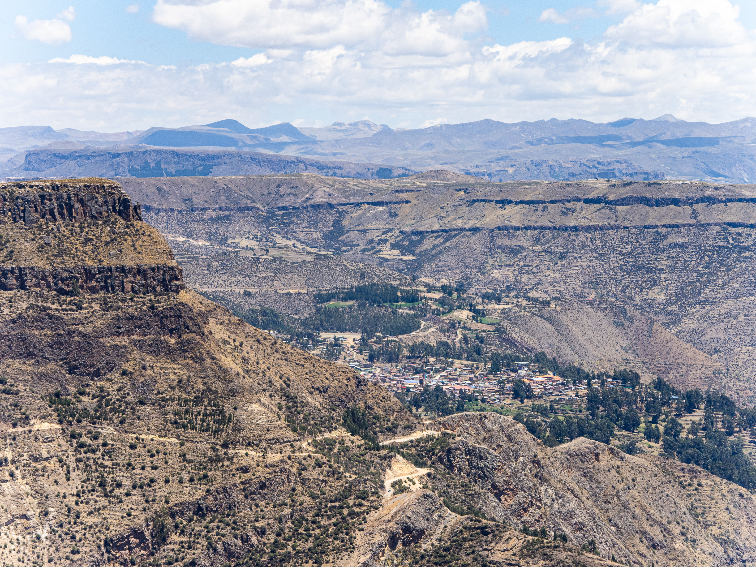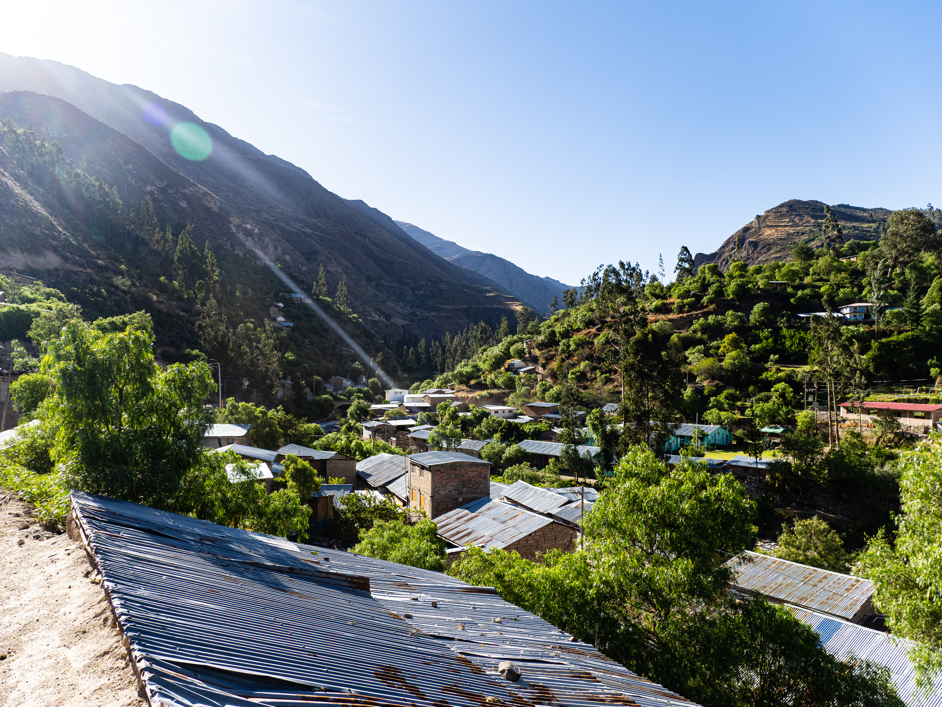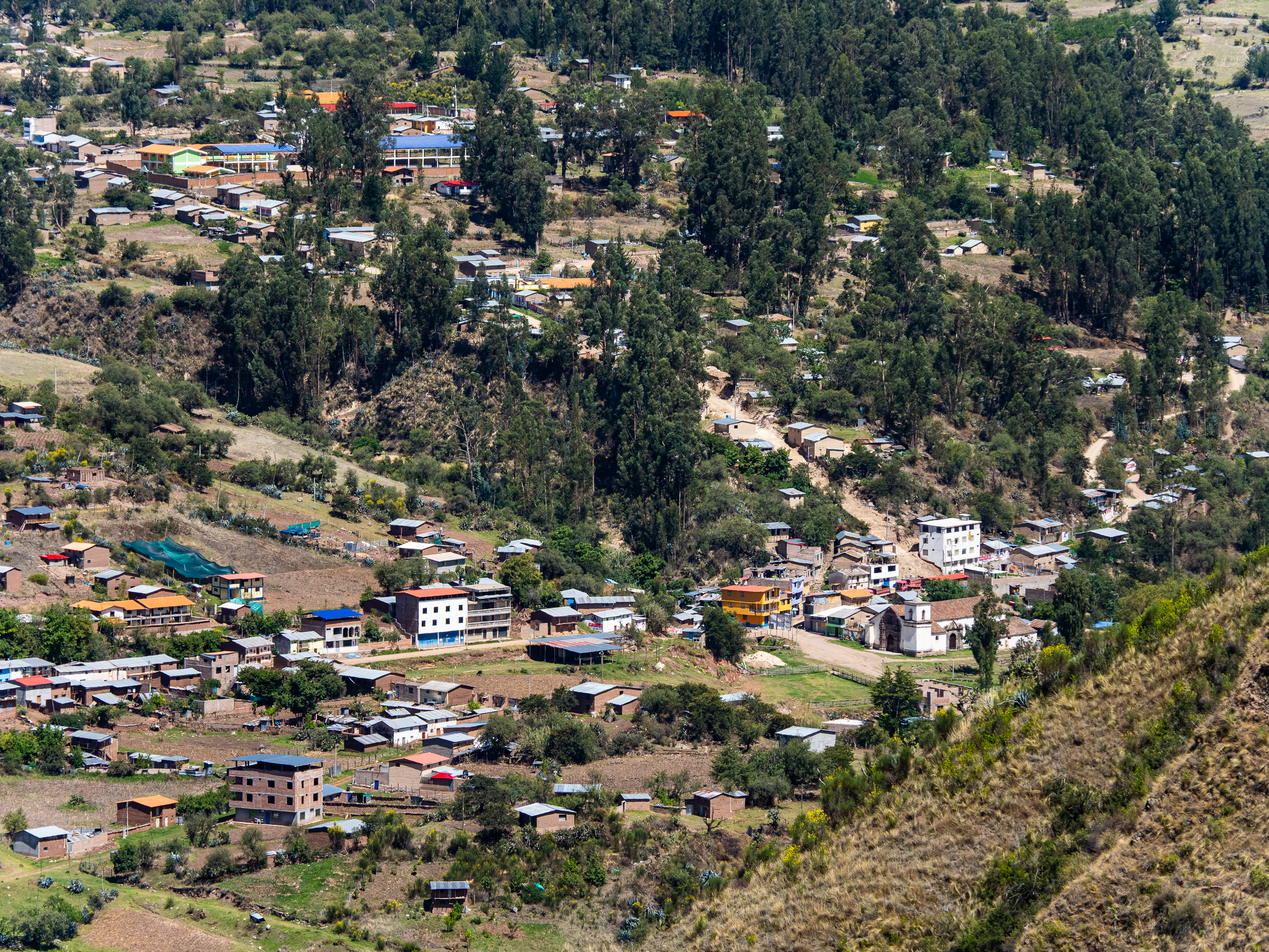 I was extremely happy I did. The valley I entered was filled with curious geological formations, eroded hoodoos, slot canyons, steep cliffs, and colourful rock formations. I passed by a remote ranch and followed the road along the reaches of the upper canyon before passing through the isolate village of Santa Ana and descending steeply to the river below. There was no easy path along the river and the road climbed steeply above it before finally descending to the town of Luren. There, I lay back in the plaza before I finally found the owner of the only hospedaje in town. The alternative was beginning the 900m climb out of town and hoping to find a place to camp, but I was already pretty tired so I stayed put. The room was as barebones as it gets, but the bed was decently comfy and it was cheap.