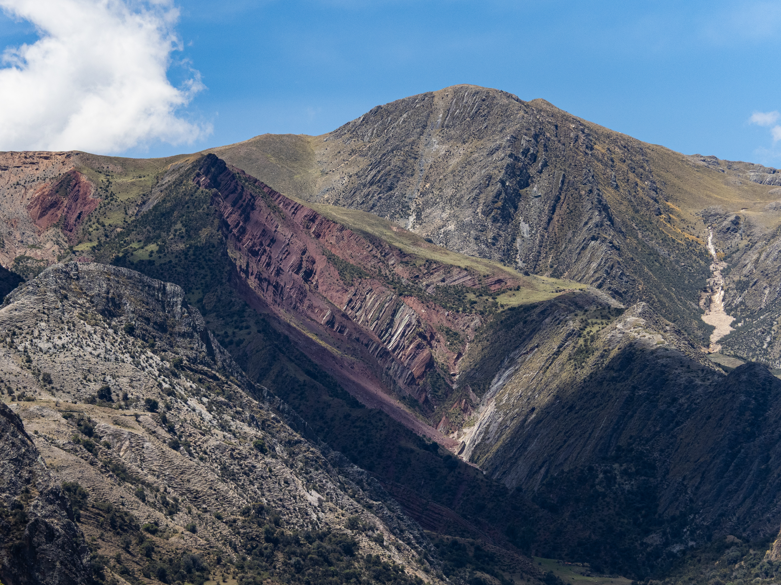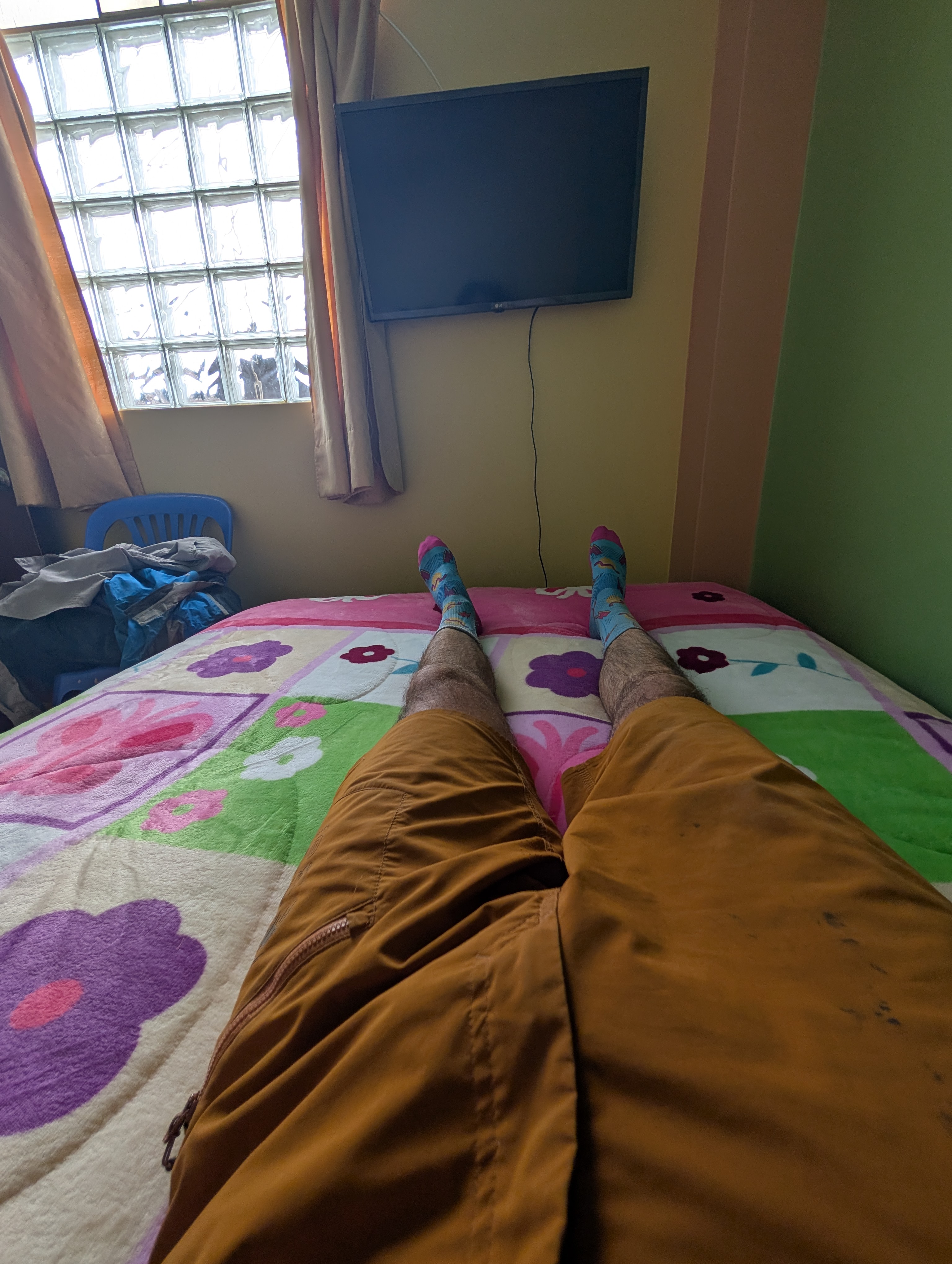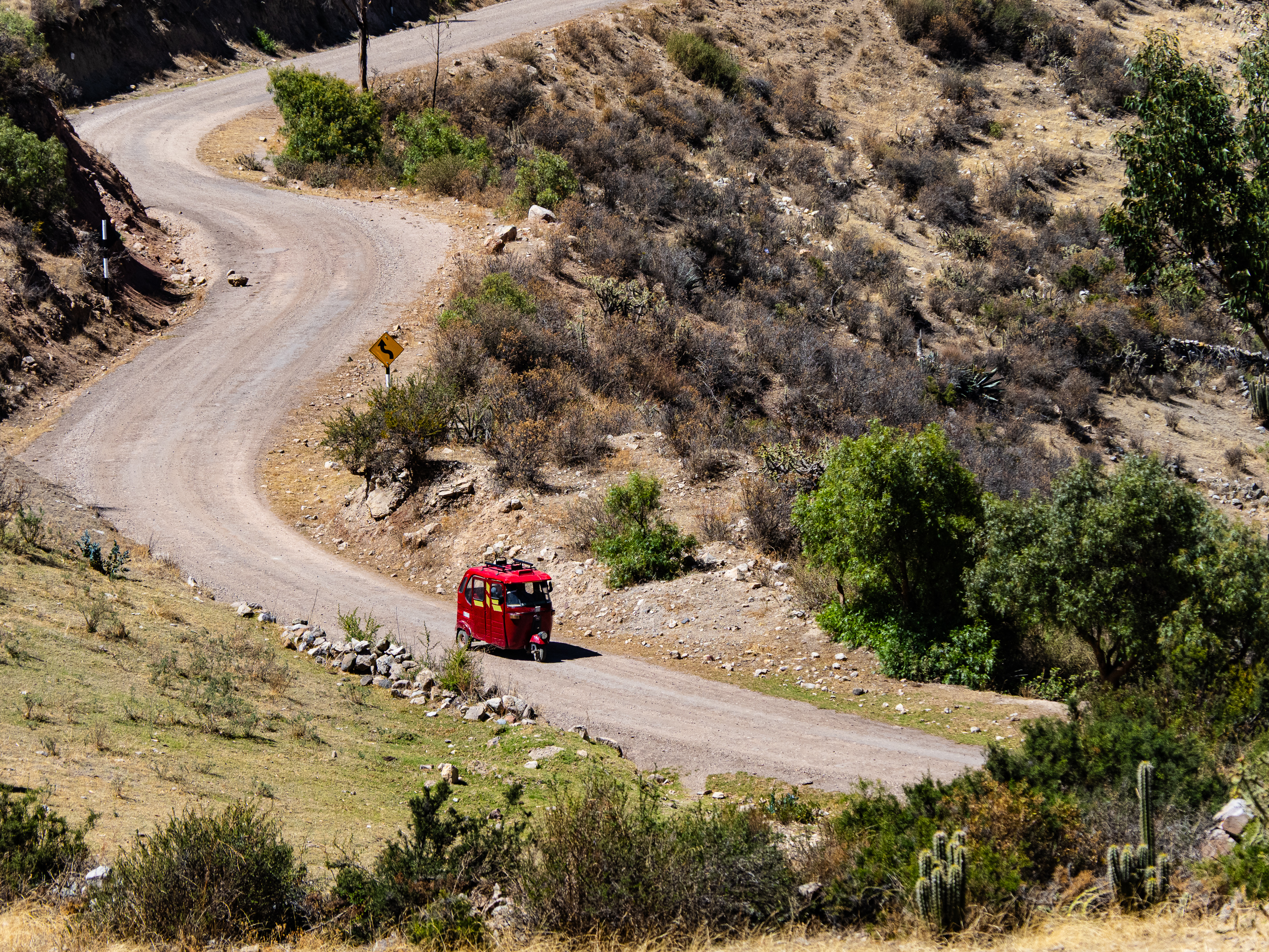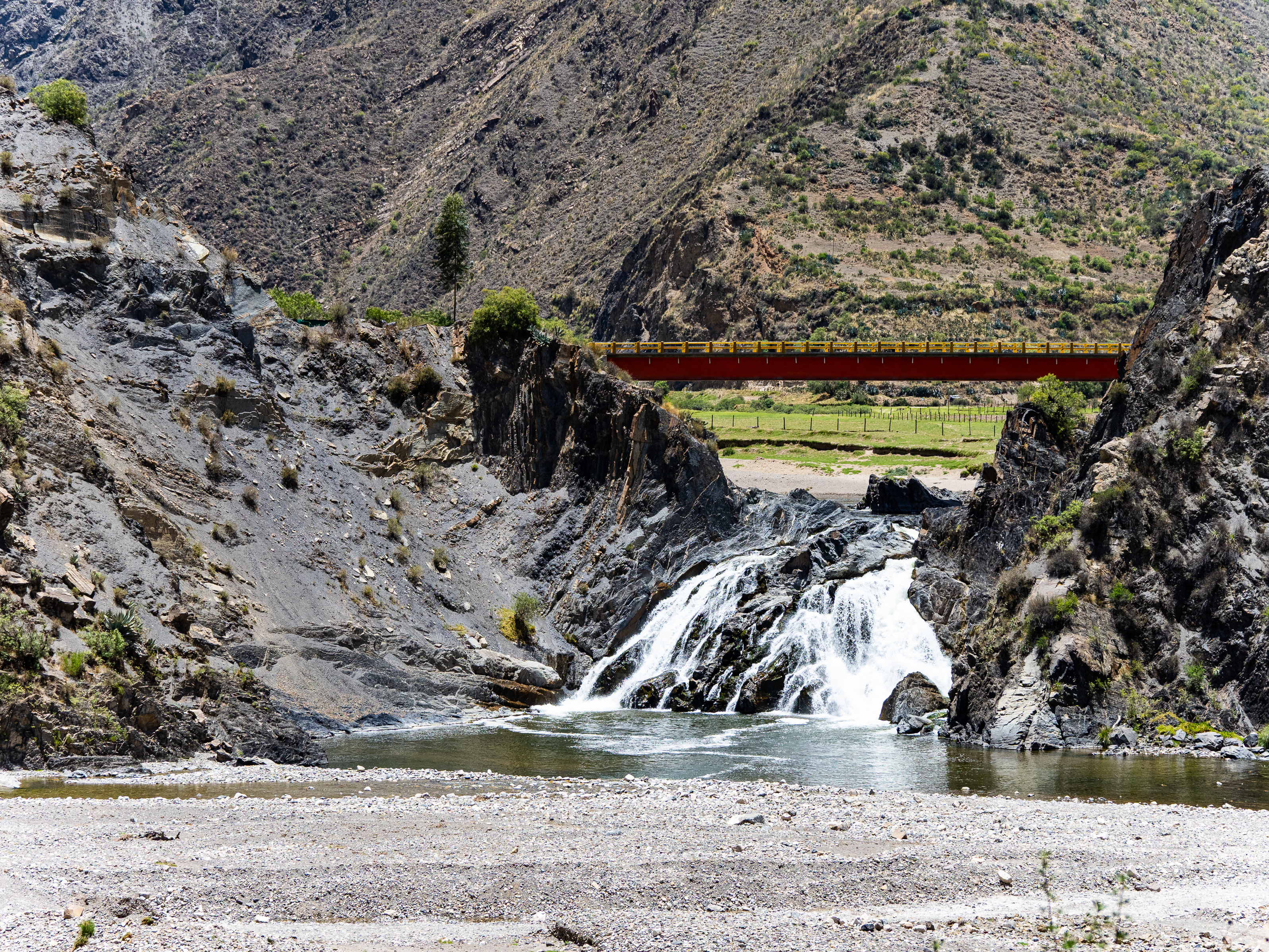 I was extremely happy I did. The valley I entered was filled with curious geological formations, eroded hoodoos, slot canyons, steep cliffs, and colourful rock formations. I passed by a remote ranch and followed the road along the reaches of the upper canyon before passing through the isolate village of Santa Ana and descending steeply to the river below. There was no easy path along the river and the road climbed steeply above it before finally descending to the town of Luren. There, I lay back in the plaza before I finally found the owner of the only hospedaje in town. The alternative was beginning the 900m climb out of town and hoping to find a place to camp, but I was already pretty tired so I stayed put. The room was as barebones as it gets, but the bed was decently comfy and it was cheap.