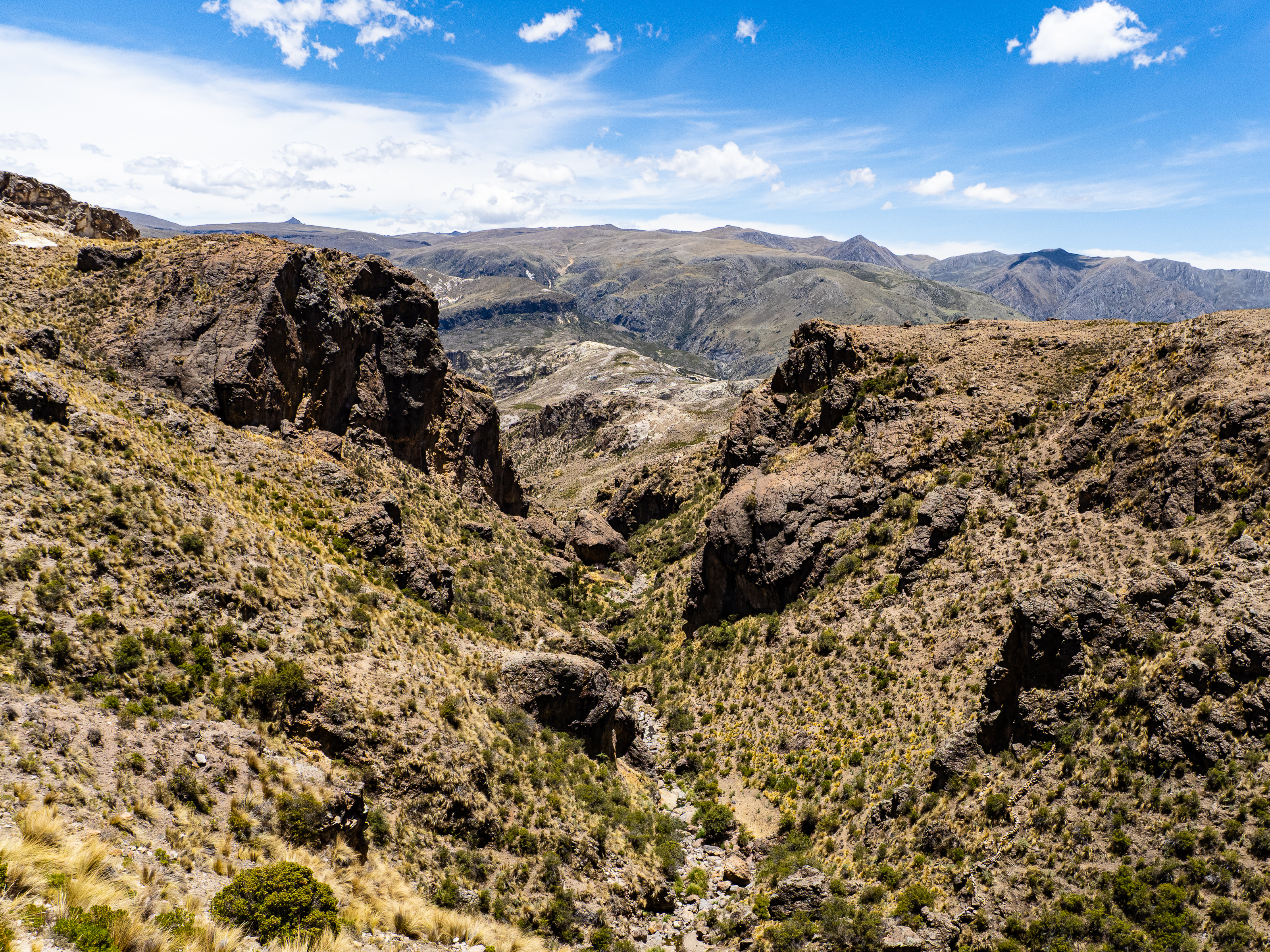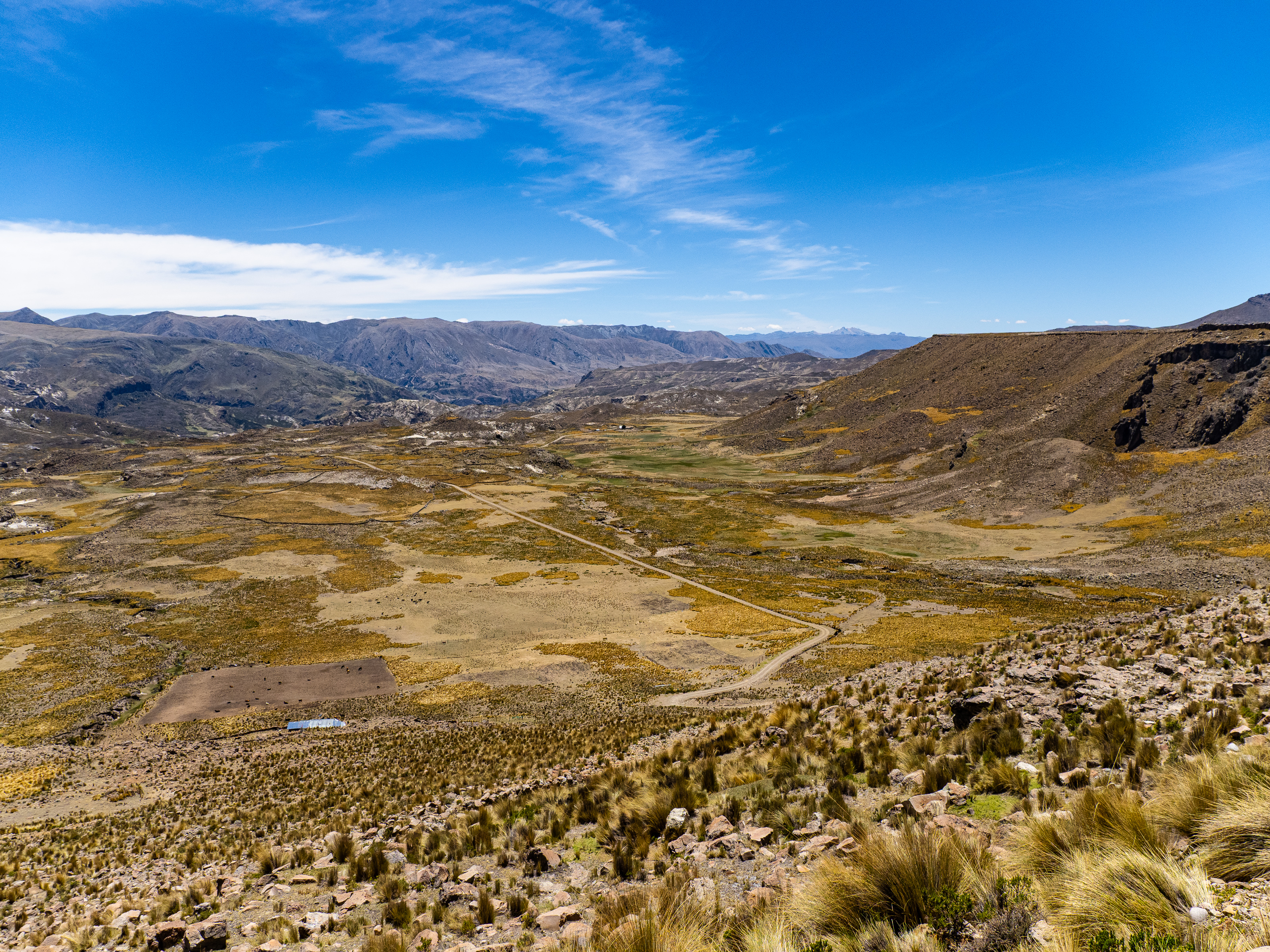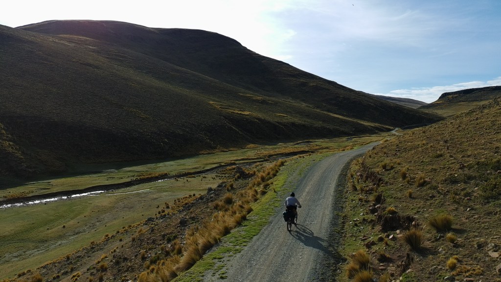 From Pachapupum, I rode back to the main road then continued through across the puna. I was heading to the Sondondo Valley for a rest day and had two options to get there. I could continue across the plateau and go directly to the valley, or I could take an alternate road through another, even more remote valley, which would had 25km and 900m to my ride. The plateau was less inspiring (by Peru standards), so I decided to go the adventurous way.