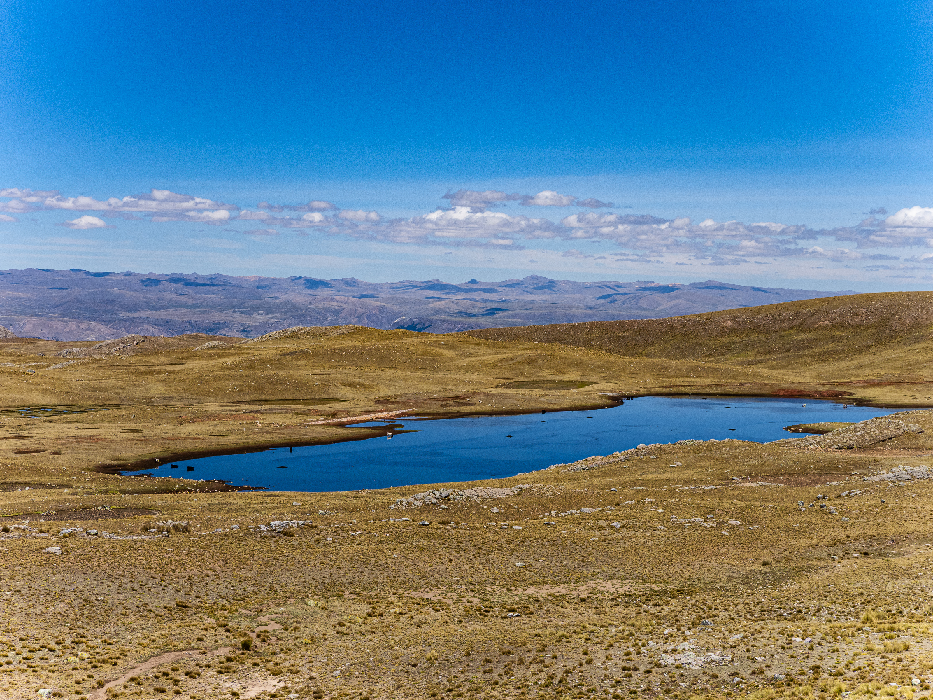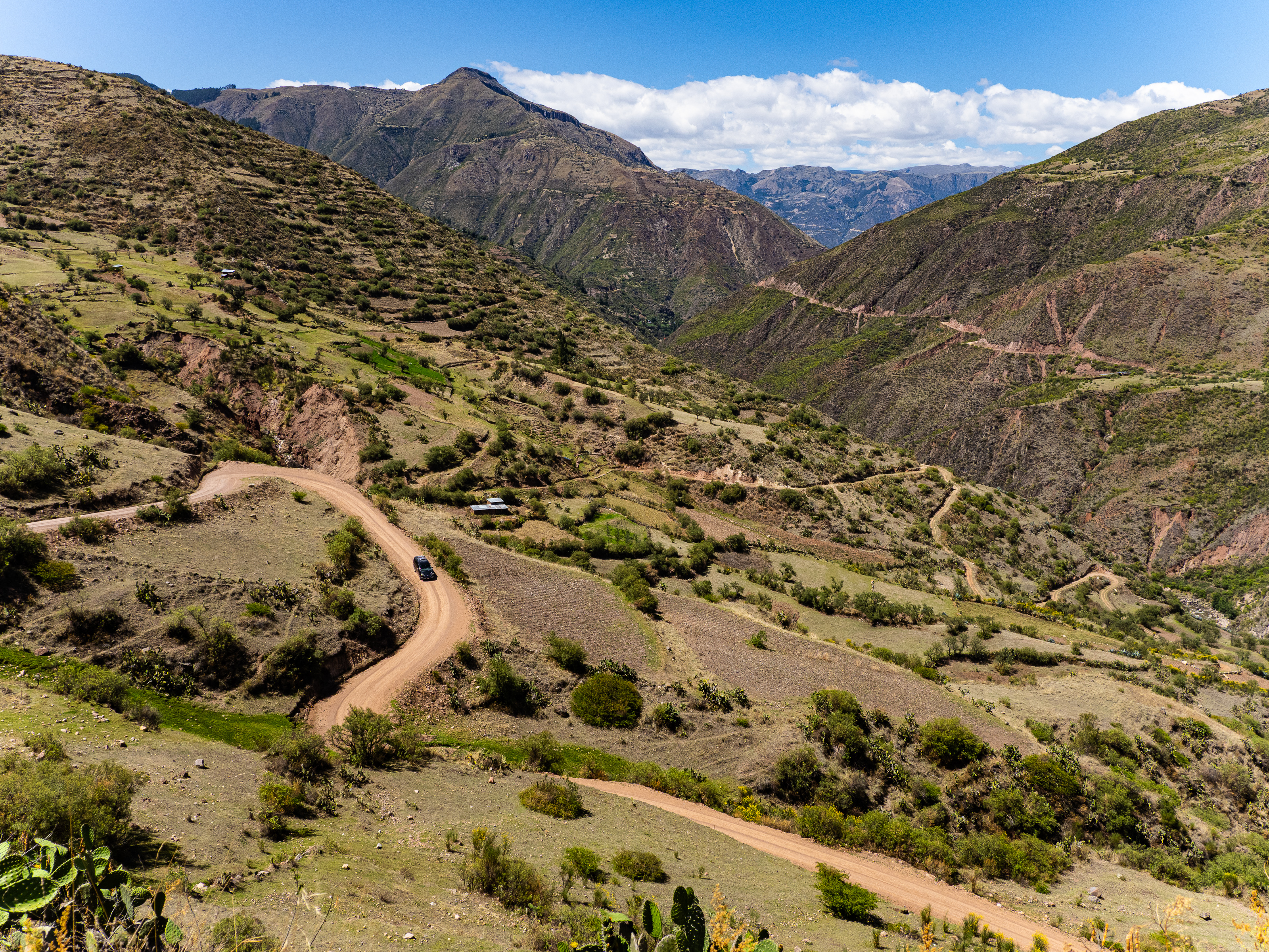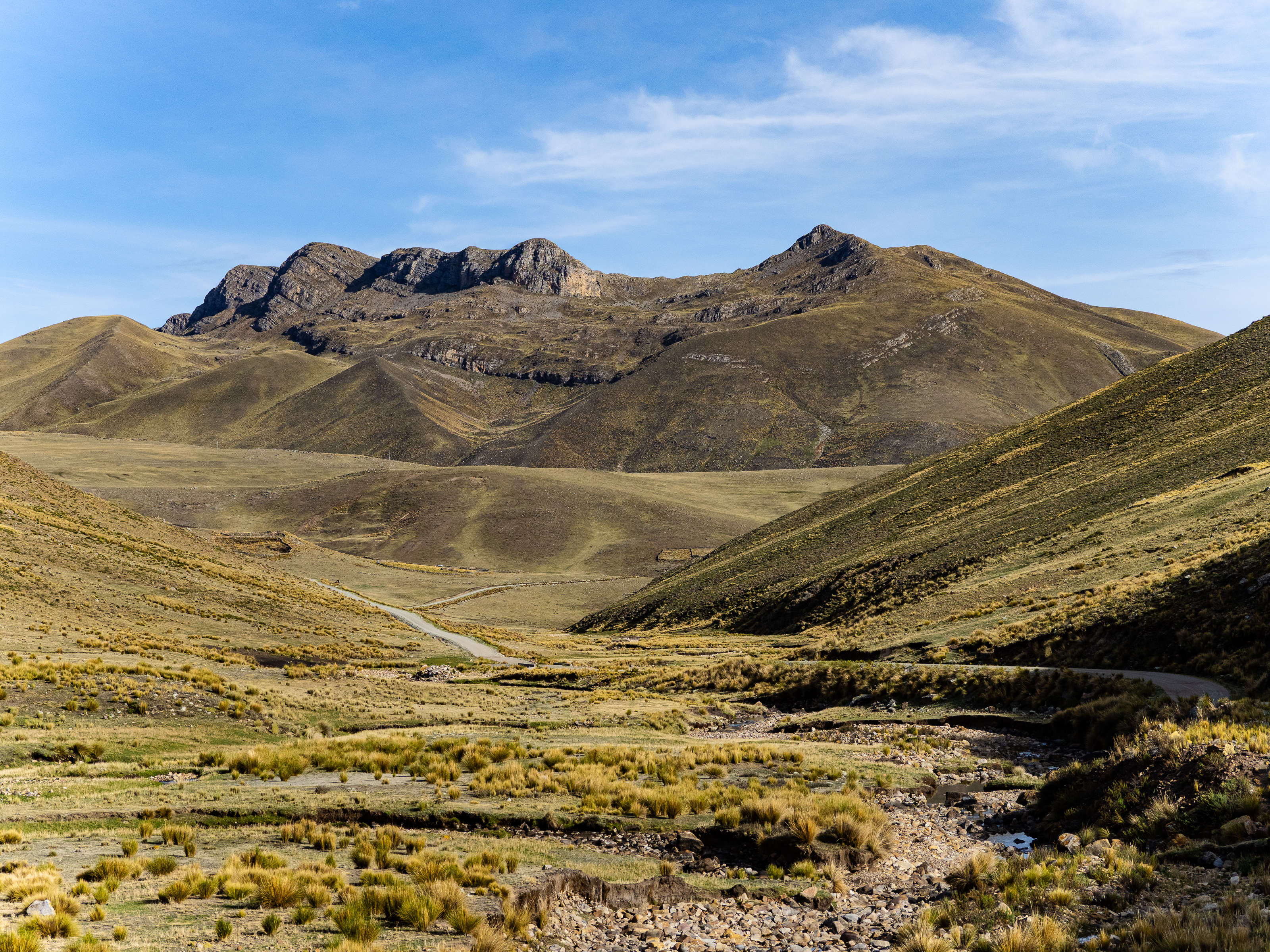 From Pachapupum, I rode back to the main road then continued through across the puna. I was heading to the Sondondo Valley for a rest day and had two options to get there. I could continue across the plateau and go directly to the valley, or I could take an alternate road through another, even more remote valley, which would had 25km and 900m to my ride. The plateau was less inspiring (by Peru standards), so I decided to go the adventurous way.