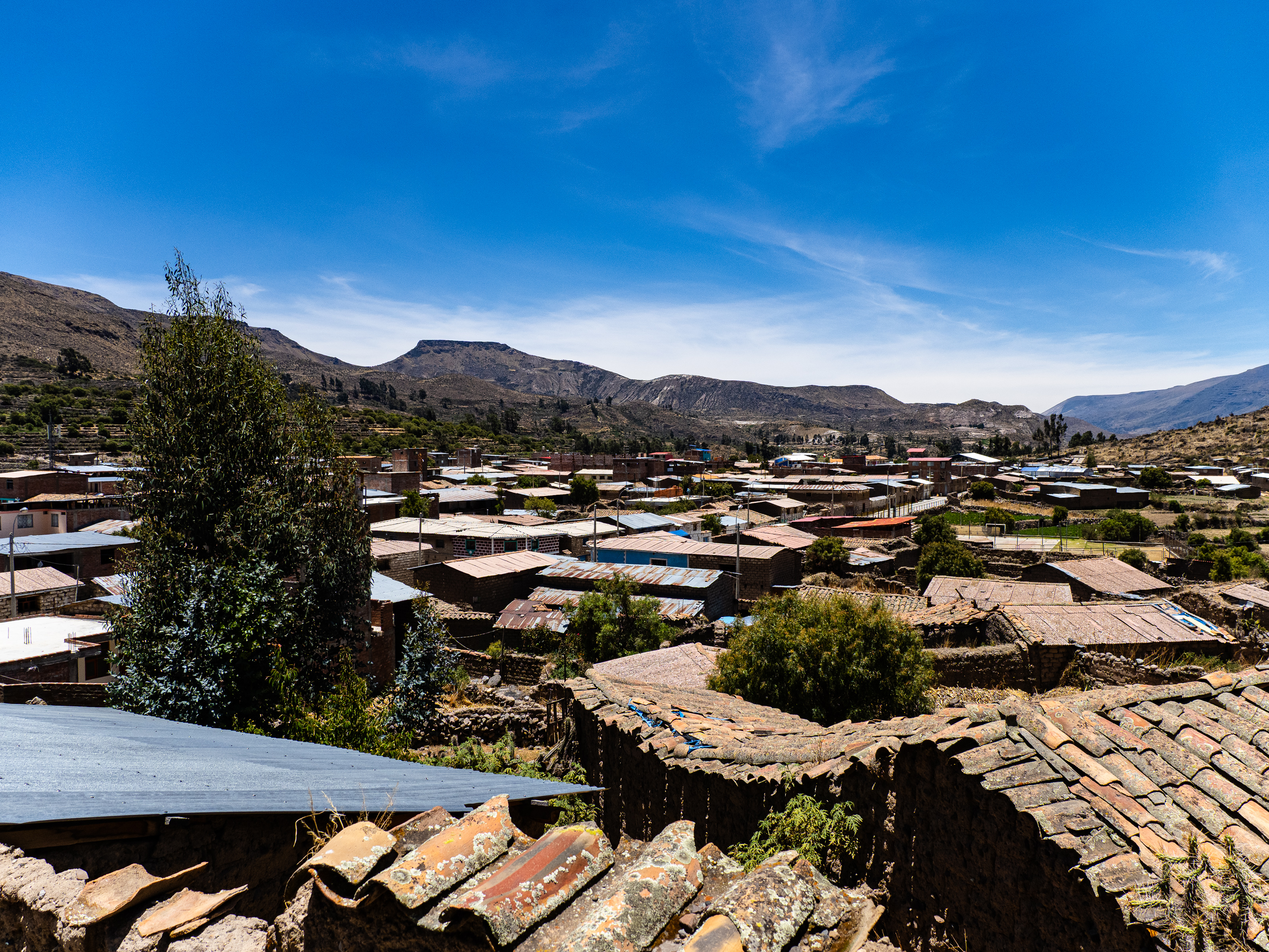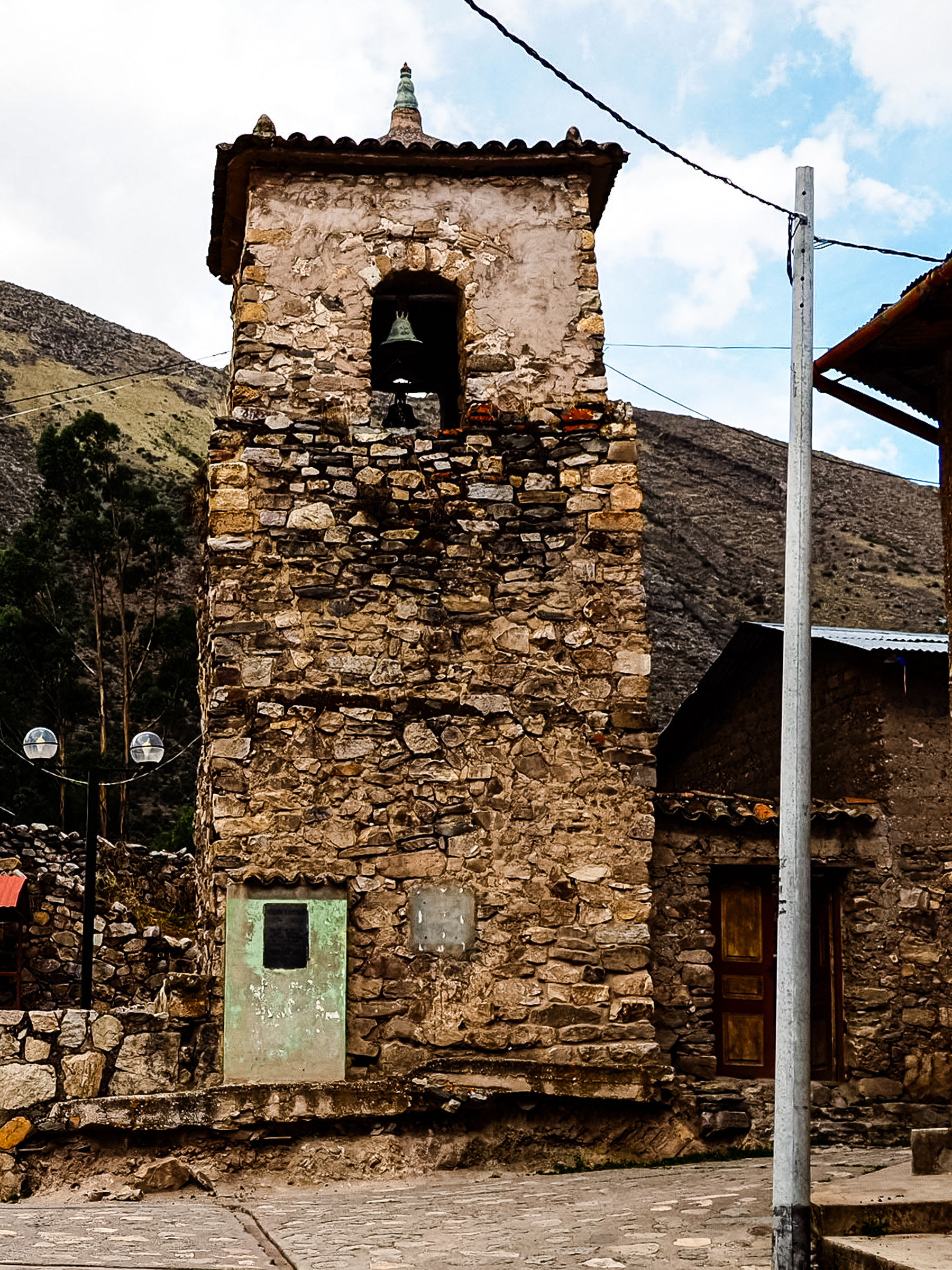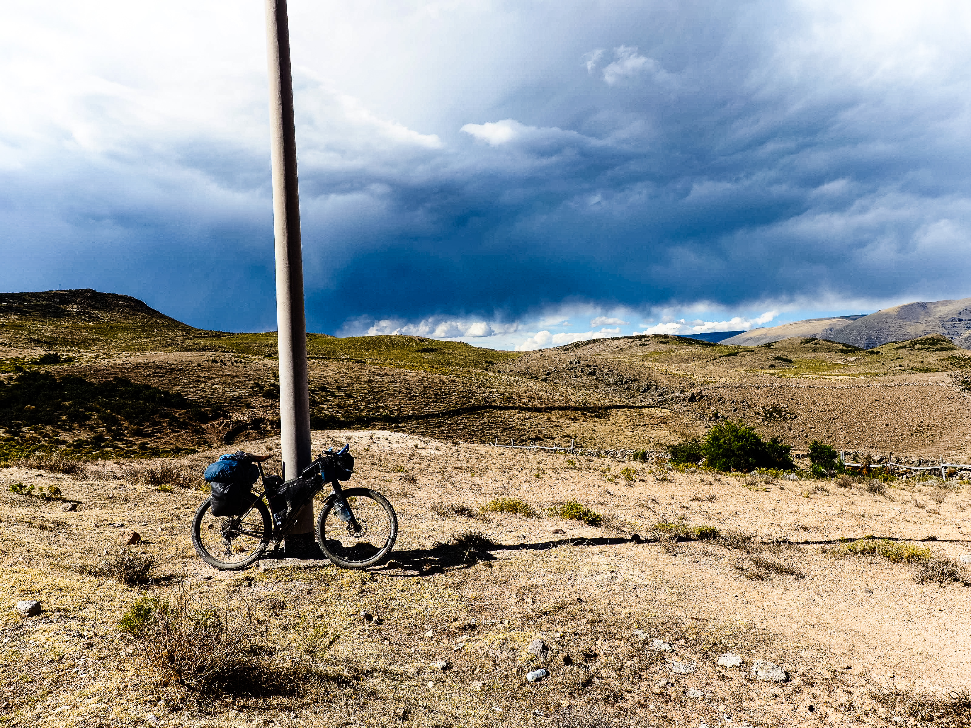 A steep, rocky downhill brought me back to the river and eventually the Vischongo flowed into the Rio Pampas and I turned northwest. The road was dusty and lined with cacti of all sorts, one of which gave me a flat. I followed the river, the road mostly flat but with some punchy ups and downs. After 20 km, I reached the town of Cangallo, where I took a brief break in the main square. The wind picked up and it looked like it would rain, but the skies held back.
