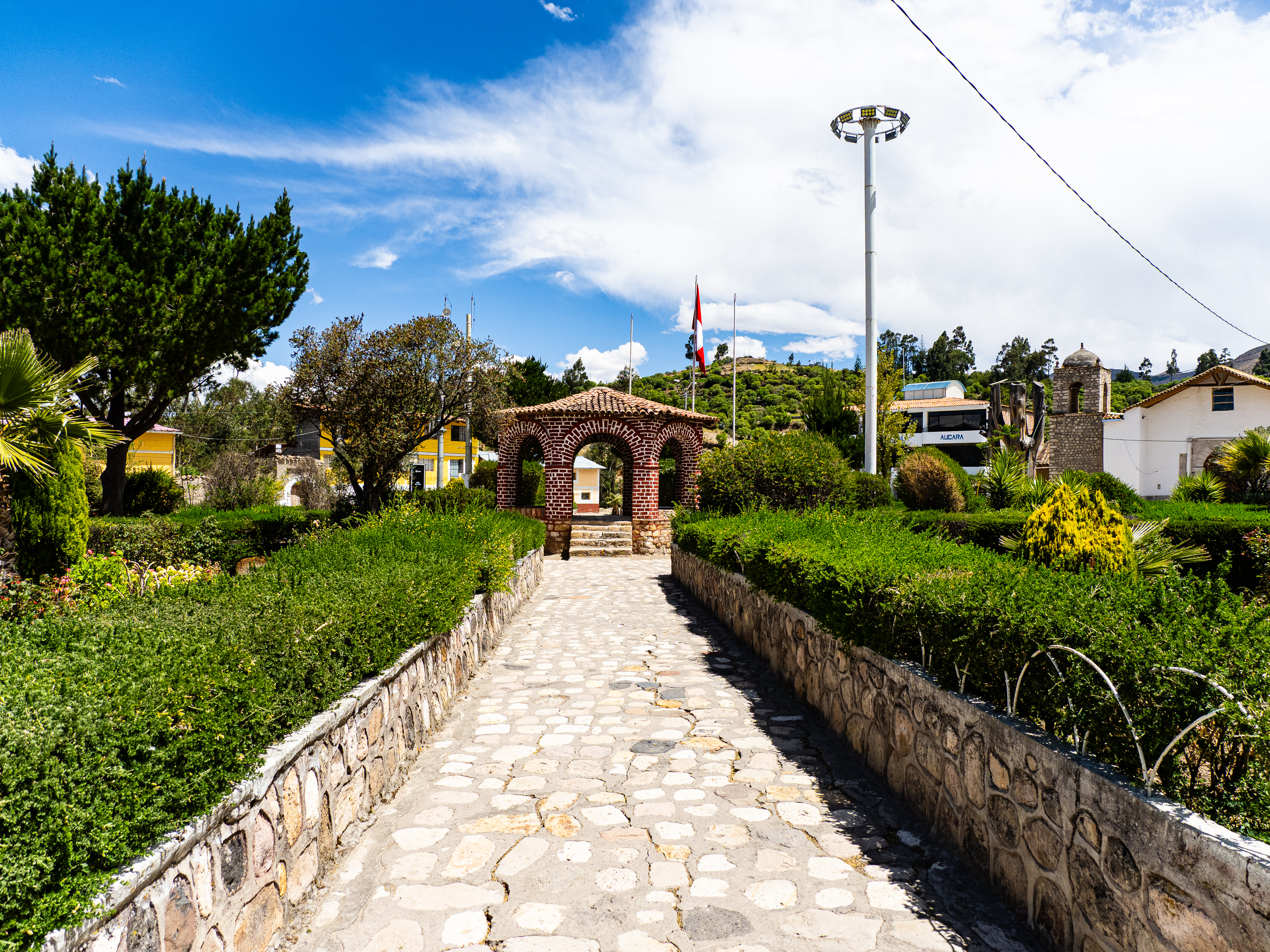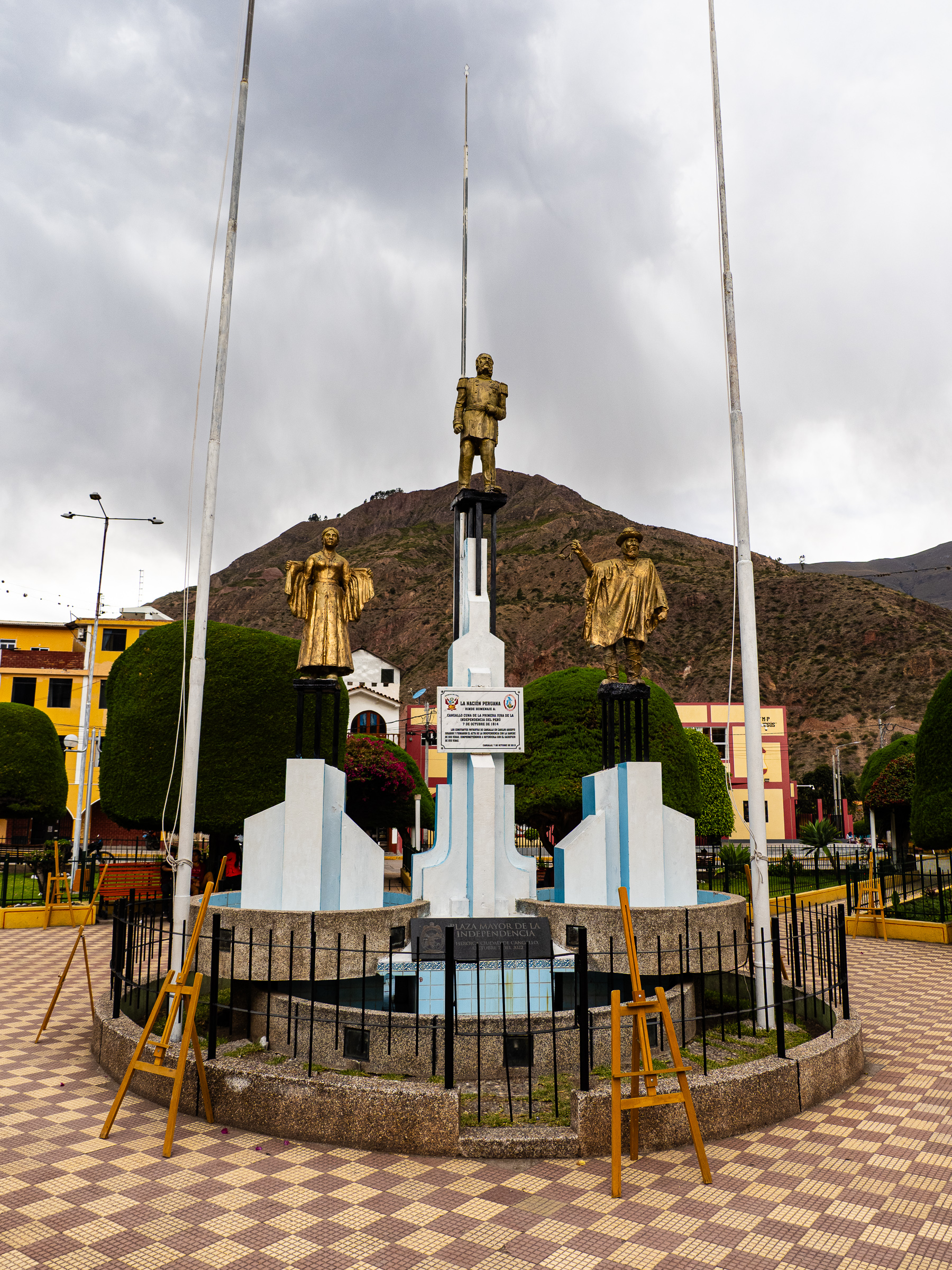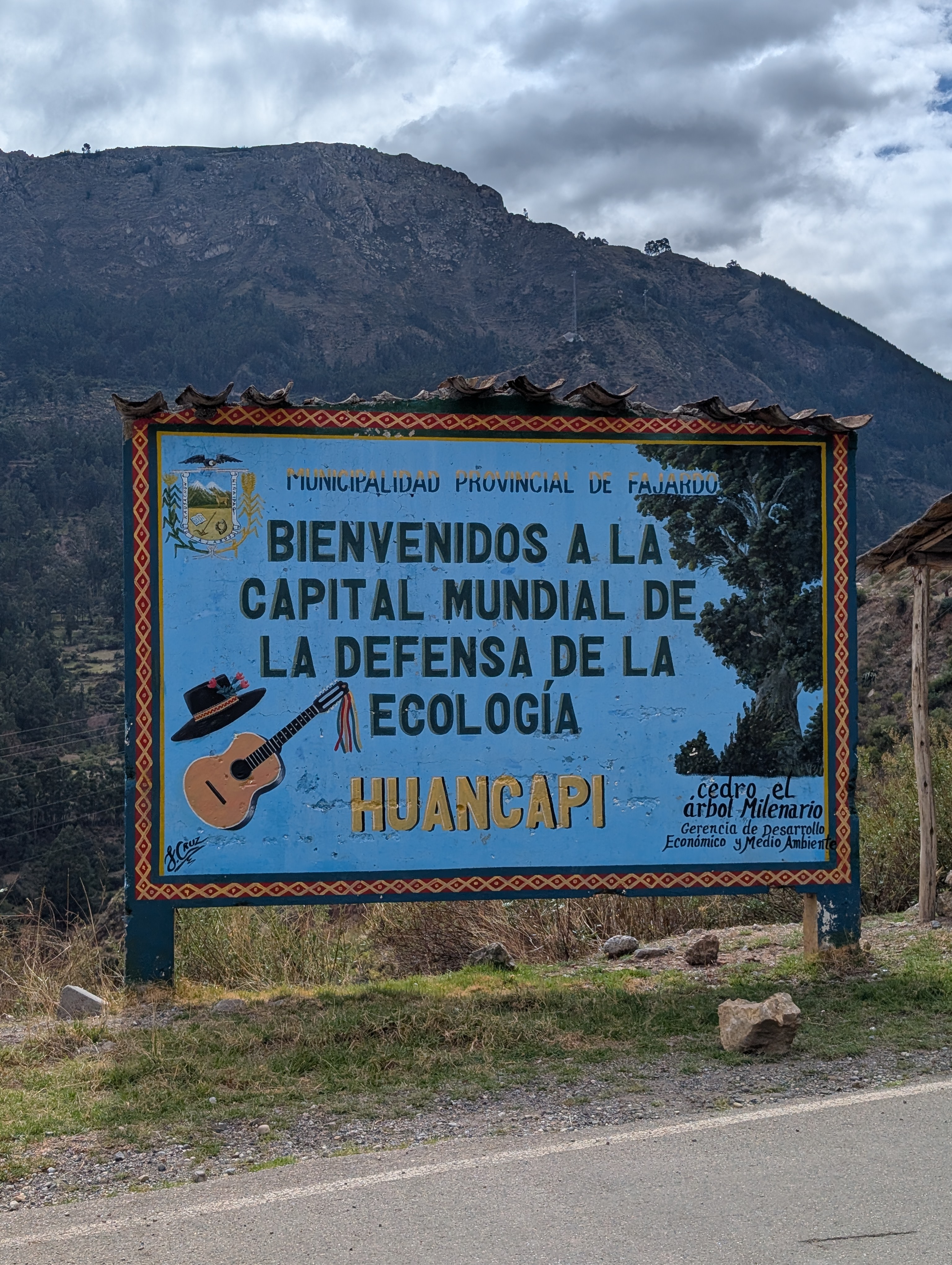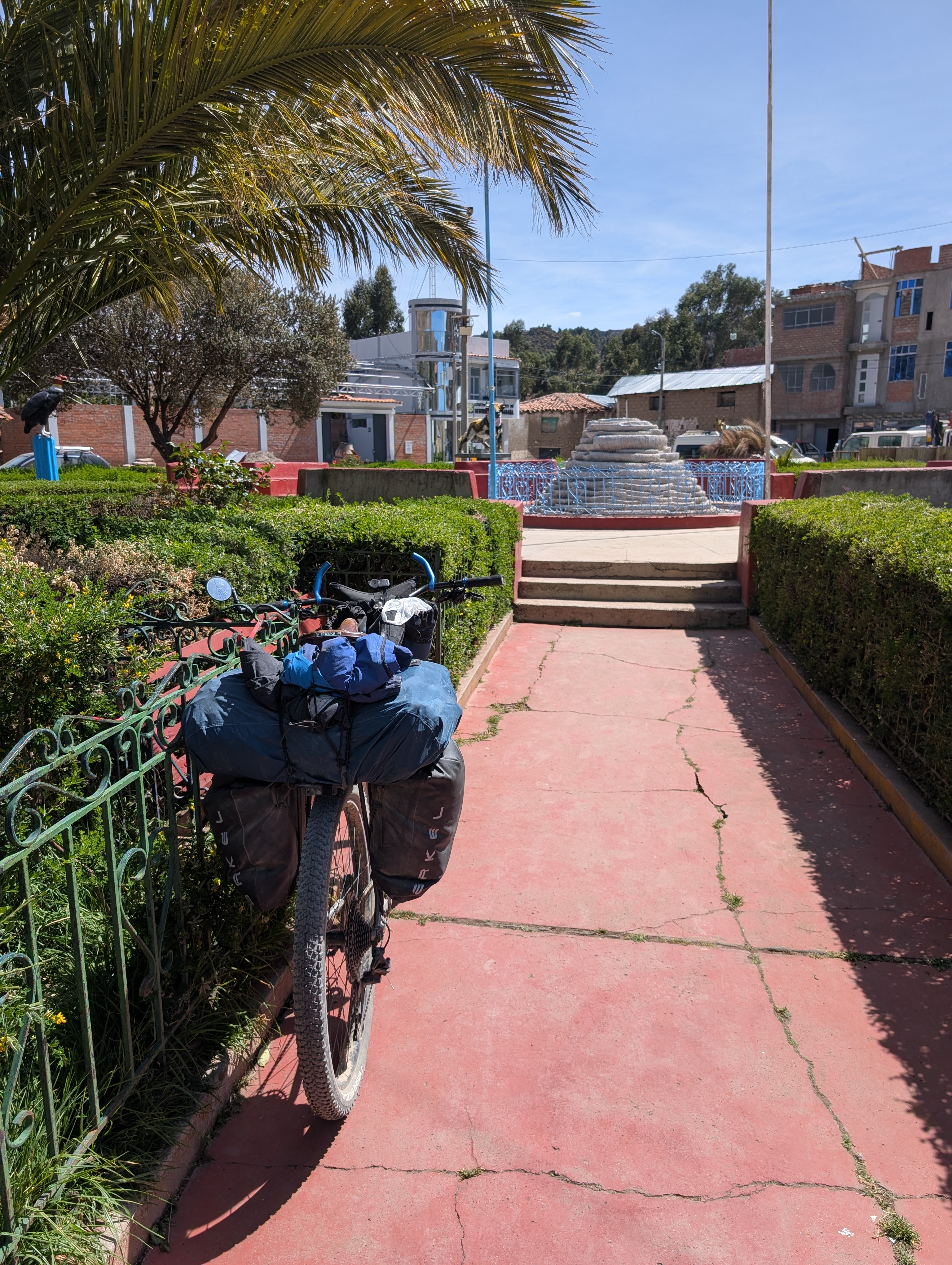 A steep, rocky downhill brought me back to the river and eventually the Vischongo flowed into the Rio Pampas and I turned northwest. The road was dusty and lined with cacti of all sorts, one of which gave me a flat. I followed the river, the road mostly flat but with some punchy ups and downs. After 20 km, I reached the town of Cangallo, where I took a brief break in the main square. The wind picked up and it looked like it would rain, but the skies held back.