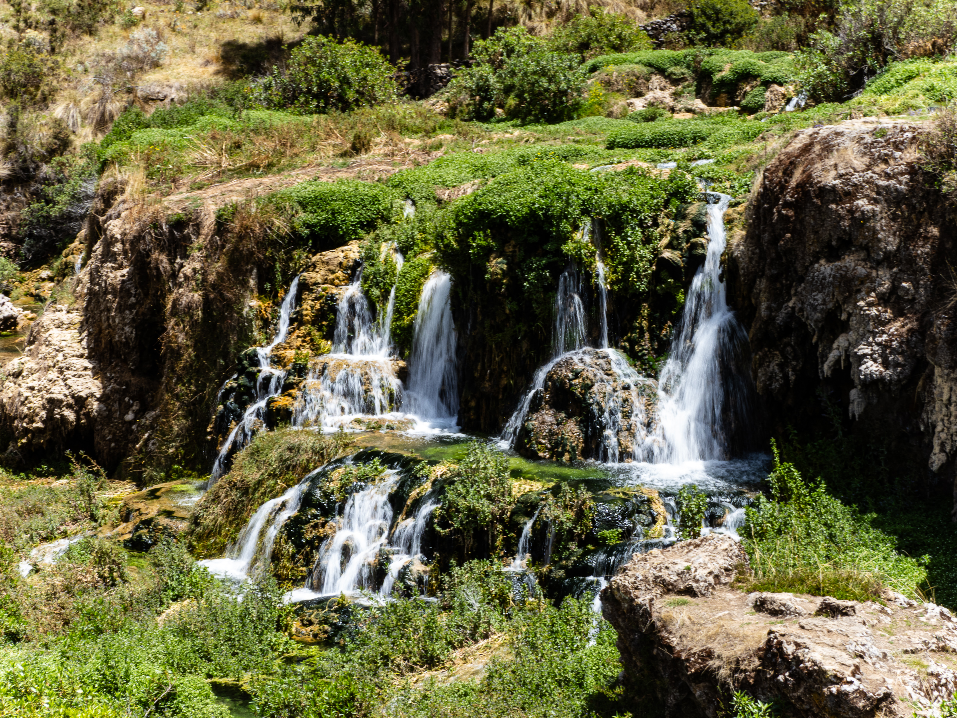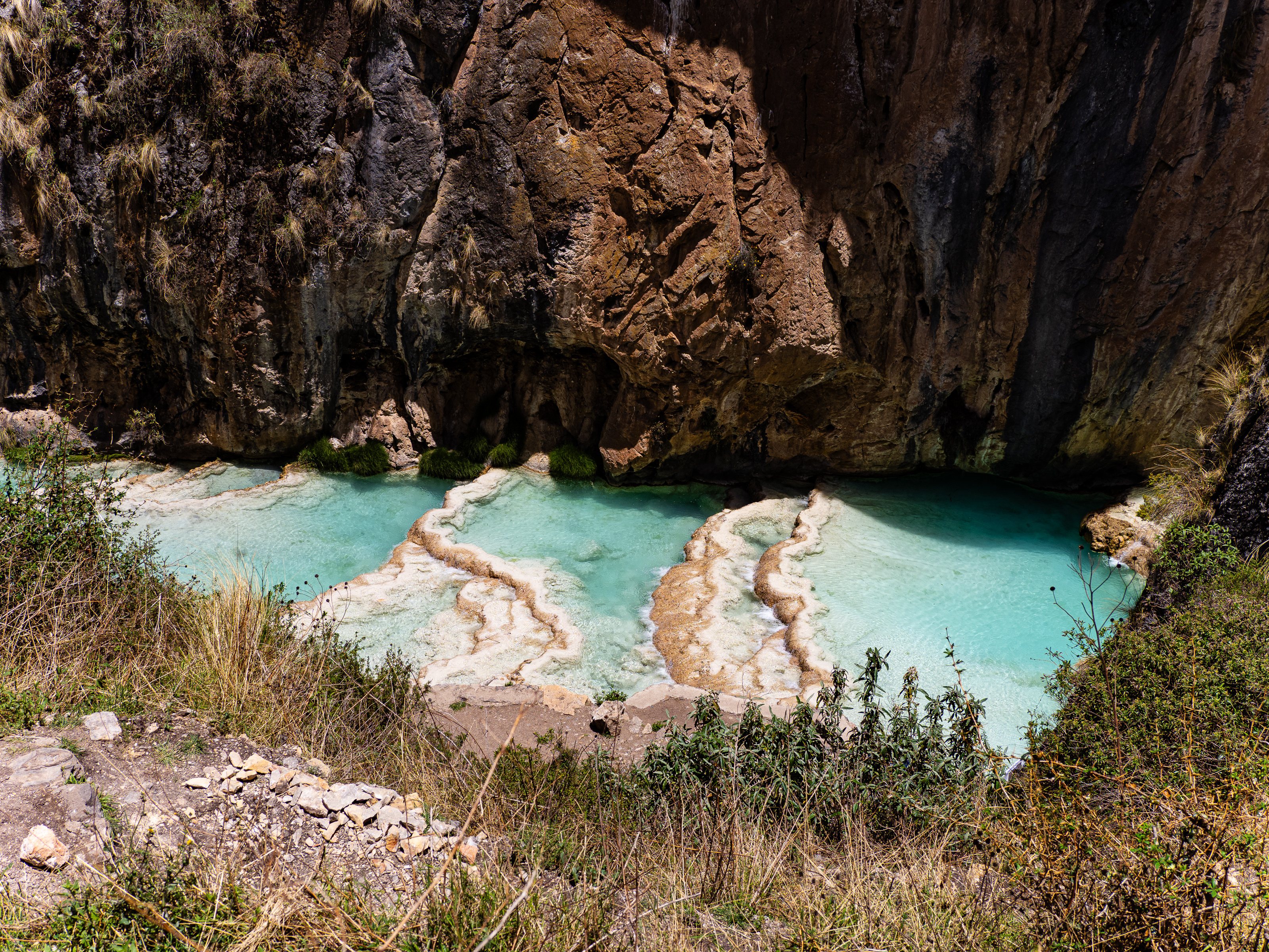 Millpu is the most well known tourist site in Ayacucho and probably the only one that lures foreigners to the region. I expected to see loads of buses when I arrived, but instead, I arrived at a large, empty parking lot. I paid the 15 soles entry fee and quickly hiked to the viewpoint. The pools were incredible and lived up to the hype. The rich turquoise colour reminded me of the glacial lakes of the Canadian Rockies, and the towering cliffs above added to the dramatic landscape. I felt so fortunate to be the only one there and I made the short walk down to the river so I could see the pools up close.