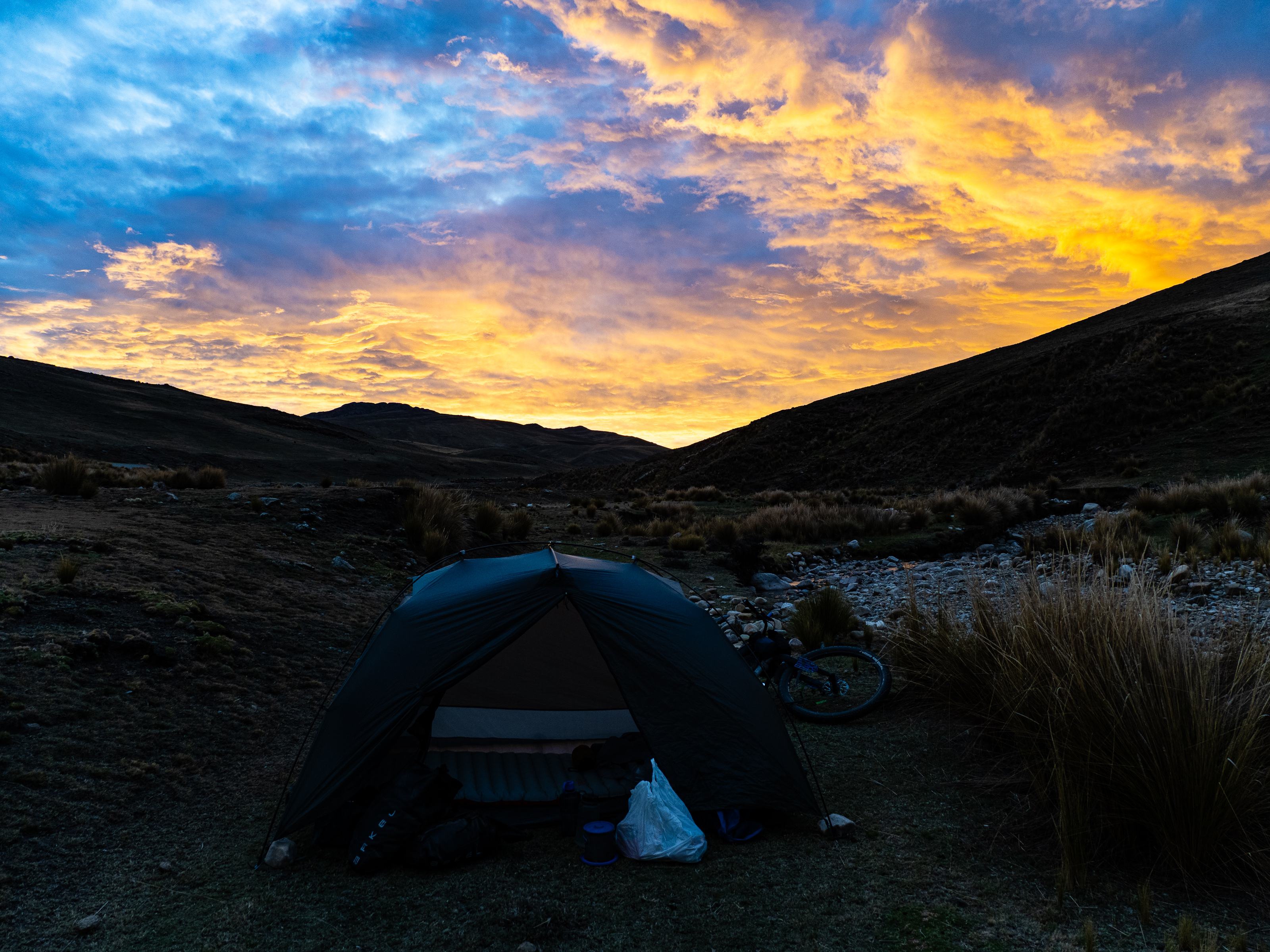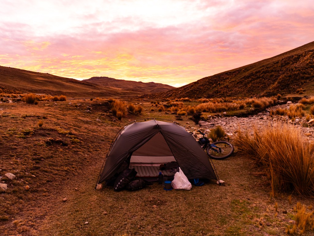 Eventually I hit the road again, turning back south along the Rio Pampas, followed by the Rio Qatupampa. I hunted for the perfect camp site, eventually settling on a spot just below the road. It was reasonably hidden and the only downside was the occasional driver honking to warn oncomers. It had been a pretty chill day, and I covered only 65 km, most of it downhill.