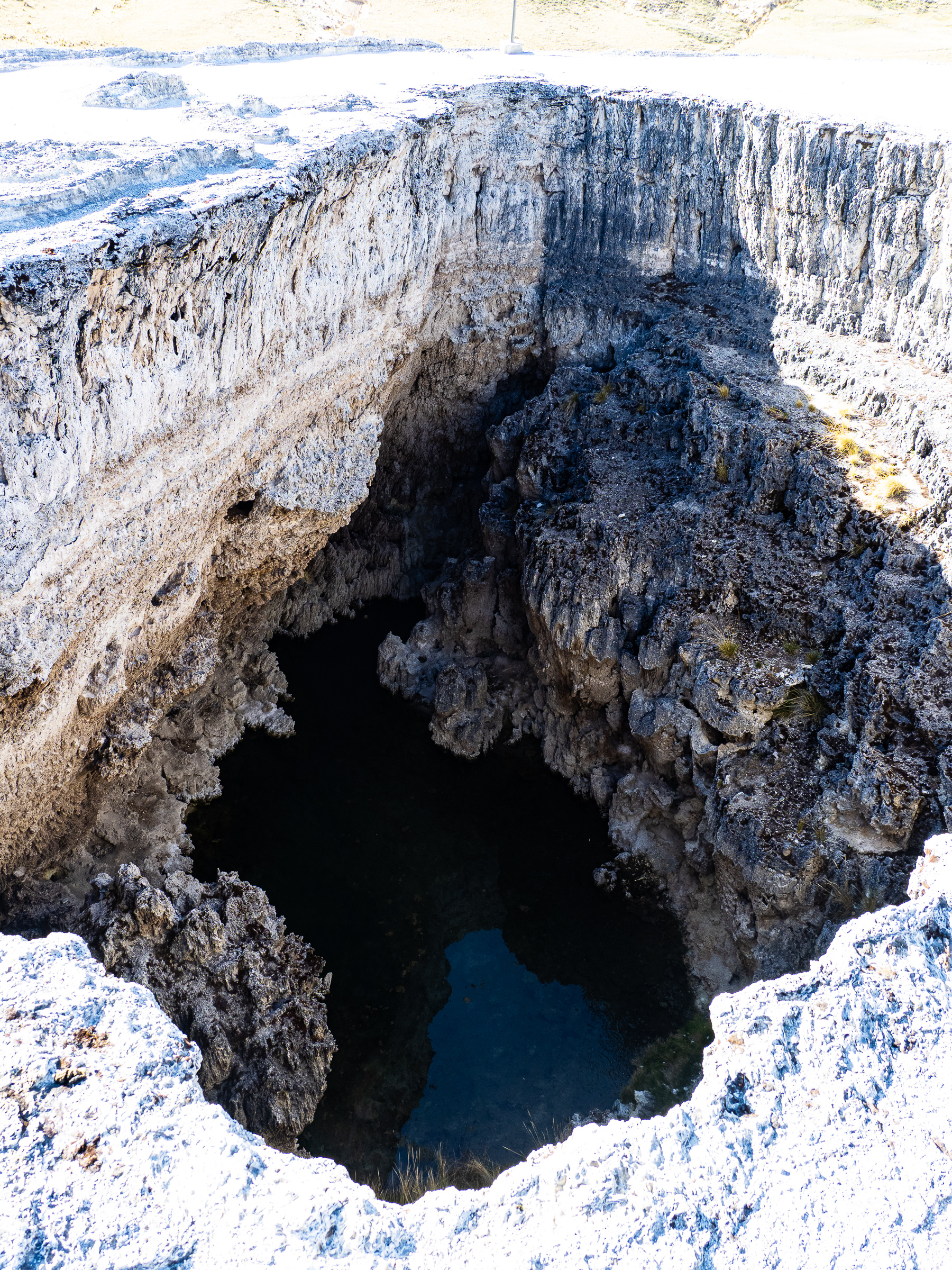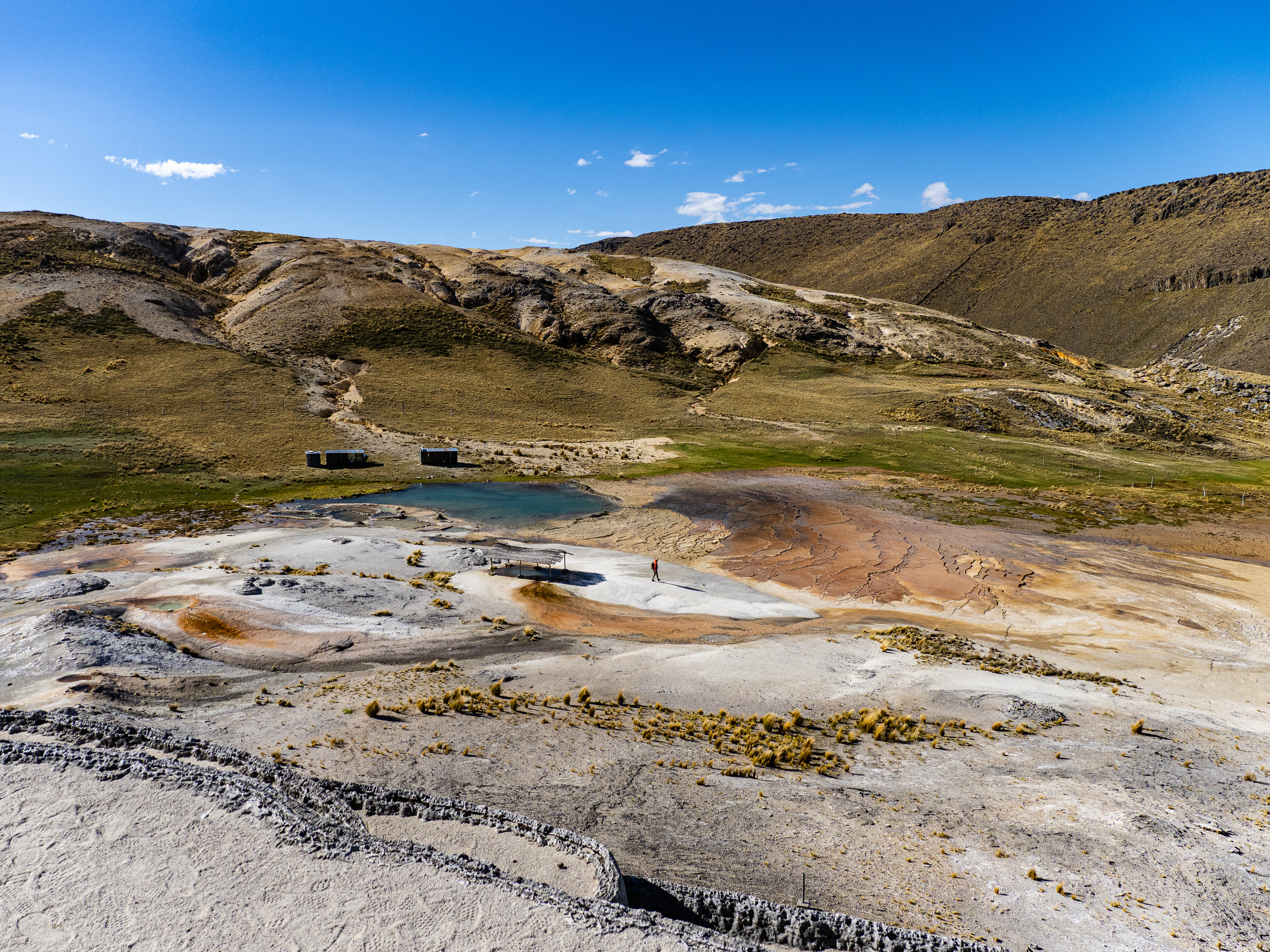 It took nearly 1,200m of climbing to reach Pachapupum and when I got there, the wind was howling. Still, I couldn’t resist the hot springs, so I changed into my swimsuit and checked out the various pools around the geyser. Surprisingly, the biggest one was the warmest (thought not quite hot) and I soaked while the wind gusted. It did not make for the most relaxing bath, so I didn’t stay in too long. I got dressed and climbed the short stairs to the top of the geyser. That night, I slept inside a shed next to the restaurant, choosing that spot over my tent due to the wind. I needn’t have, since the wind died down at sunset, as it would every other night of my trip.