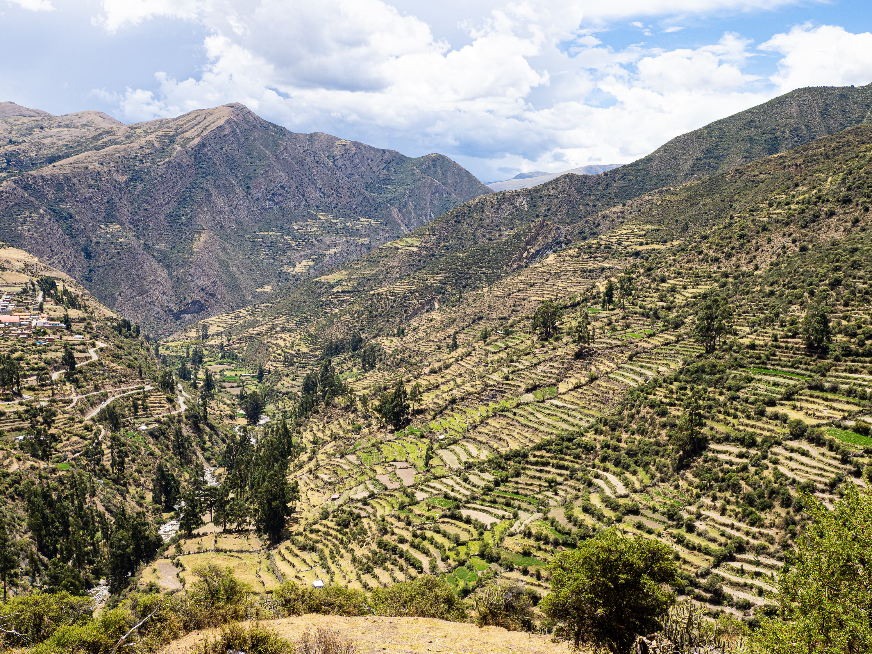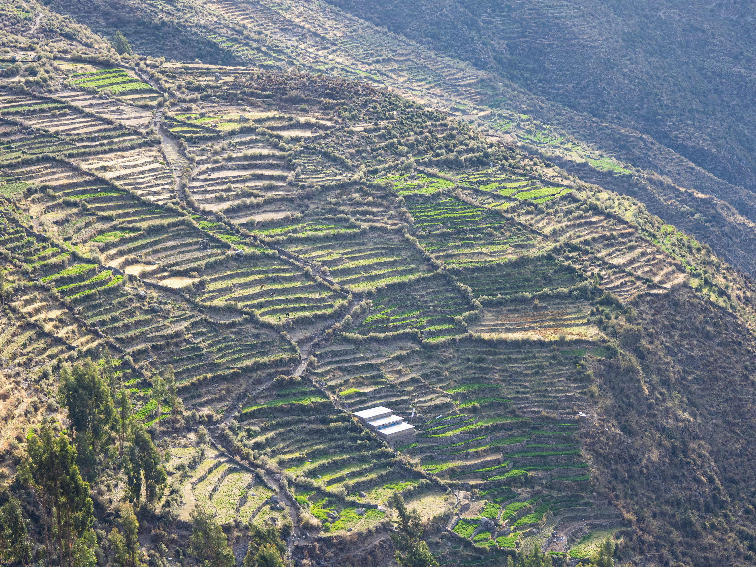 The next morning I was up early so I could hike up to Maukallacta, the remains of a pre-Incan fortress above the town. Located on a broad bench, with vast views down two distant canyons, it was built by the Wari culture around 1,000 years ago. Some of the buildings are still in reasonable condition after all these years.