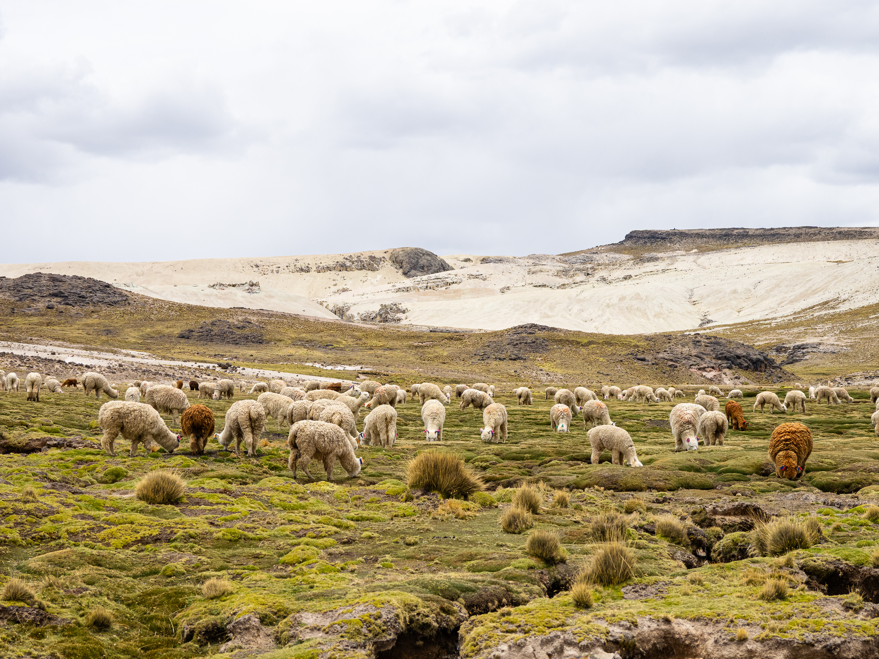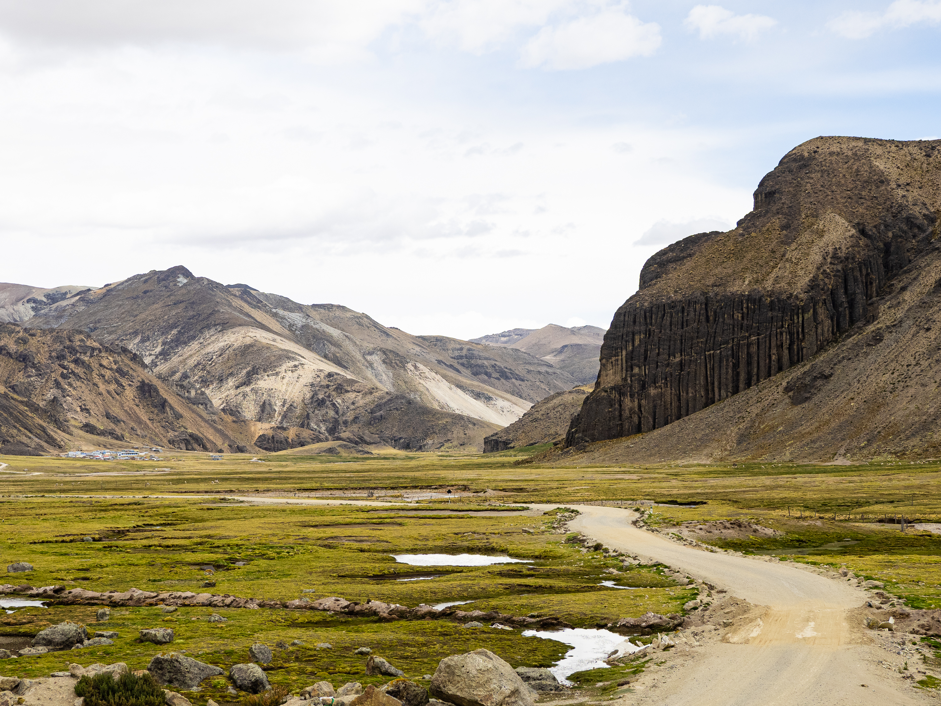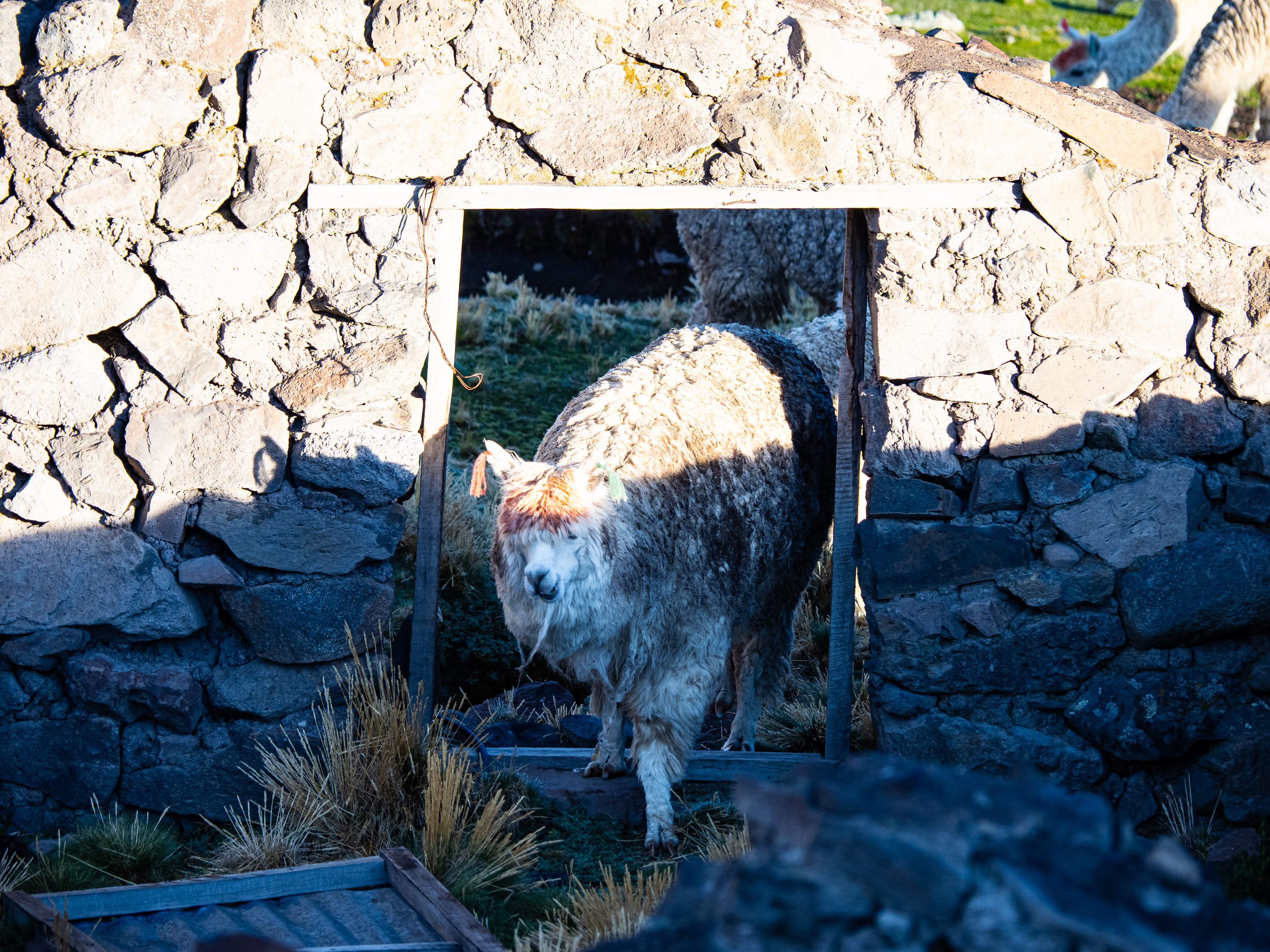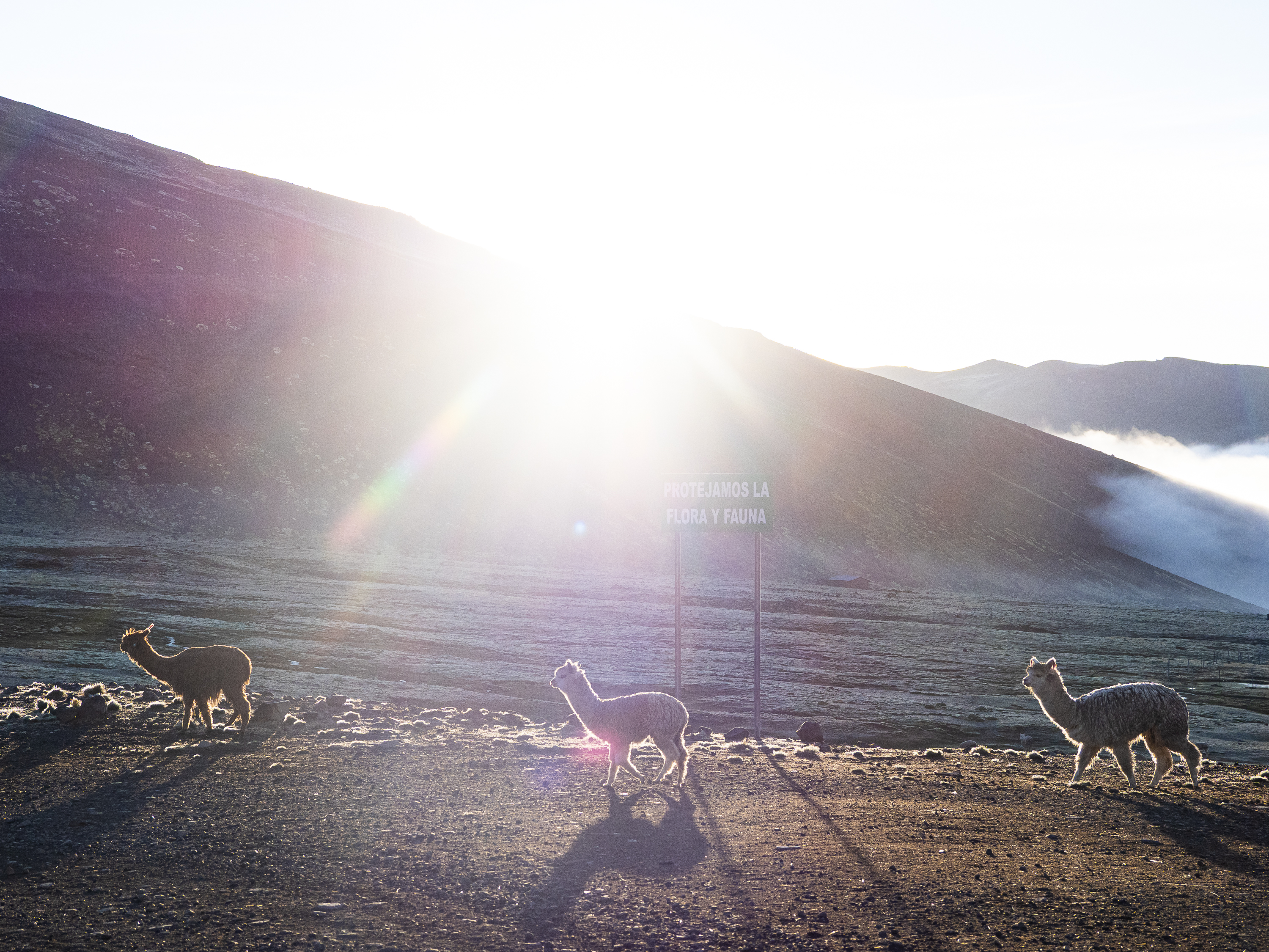 The storm did pass, but it was only a prelude of what was to come. The road continued to wind it’s way through the mountains, while the peaks themselves became increasingly dramatic. Jet black mountains streaked with grey rock falls capped red and pink mineral-rich soil, interspersed with tussock fields. I passed dispersed herds of llamas and alpacas, and the occasional shepherds home. It can’t be an easy life in these remote areas at over 4,500m elevation.