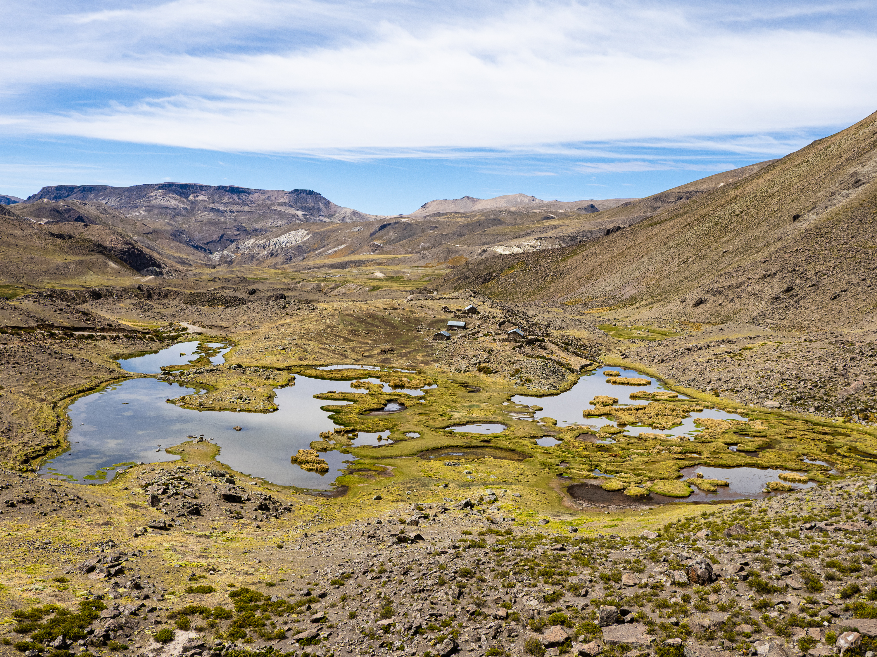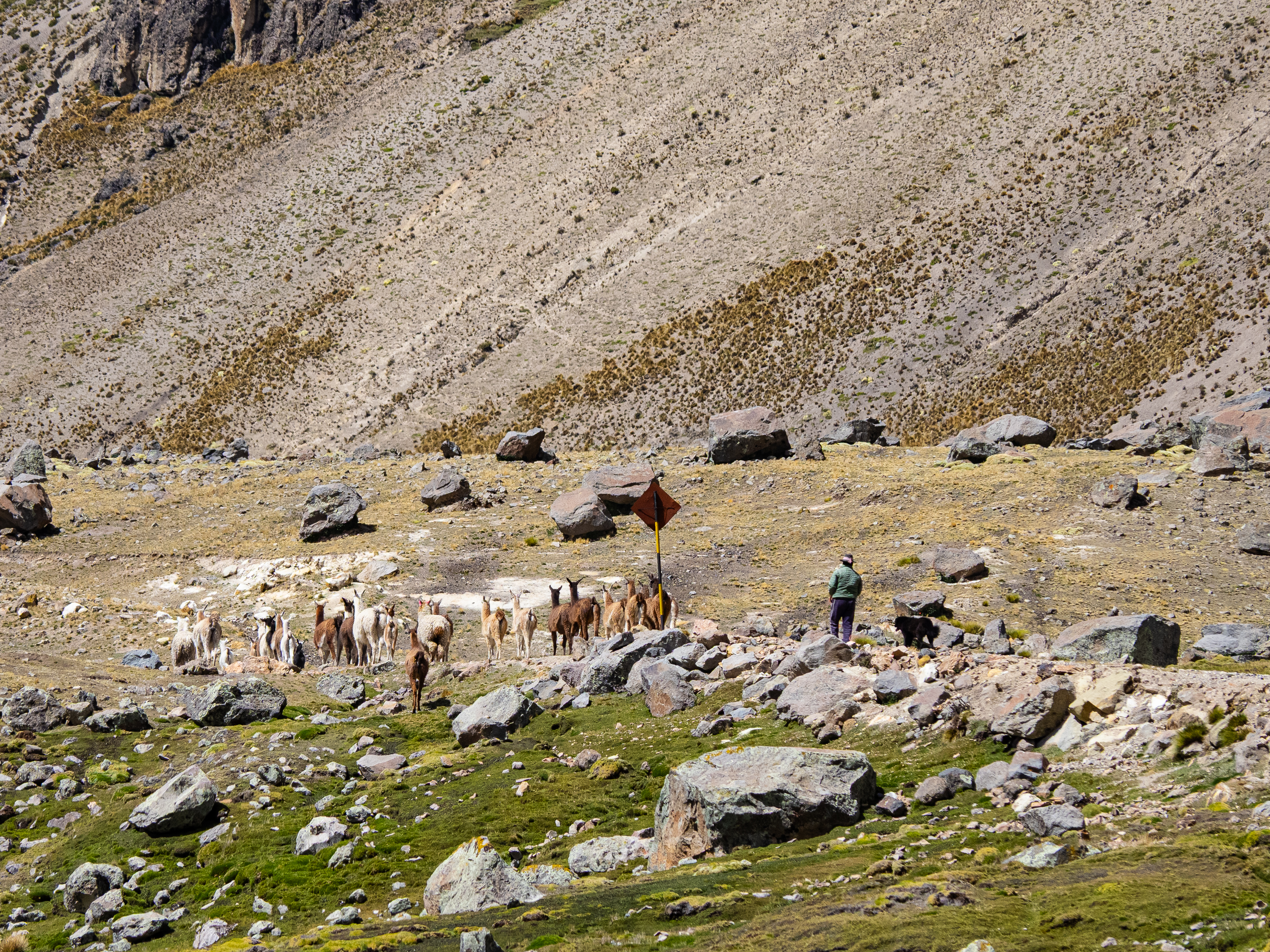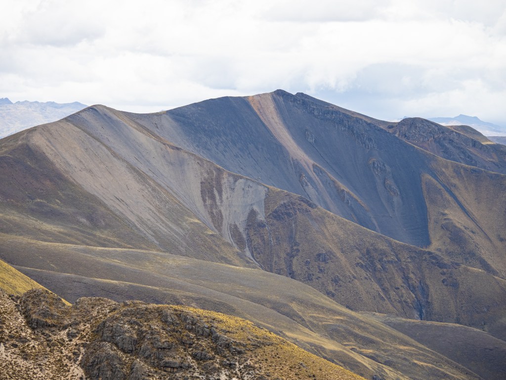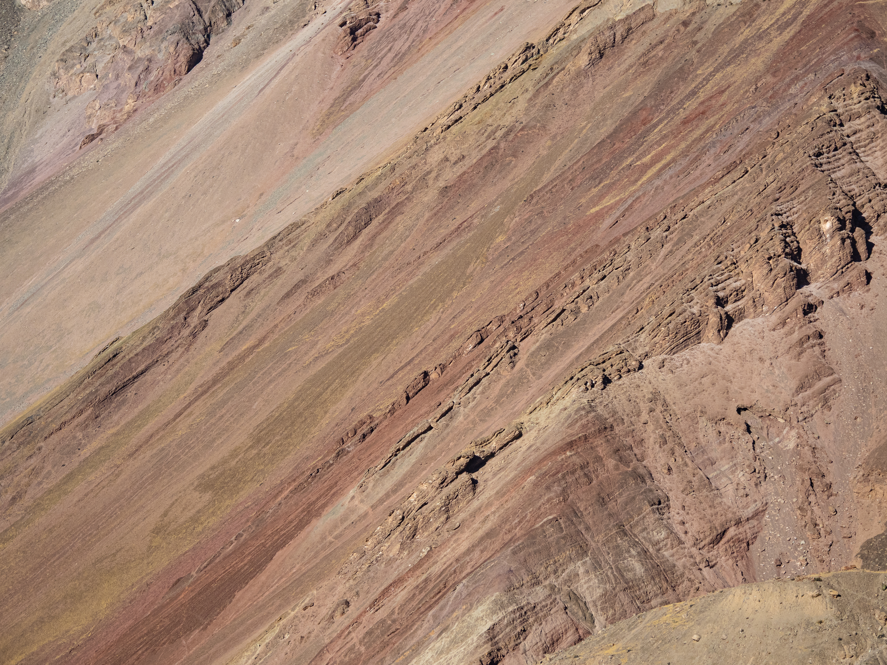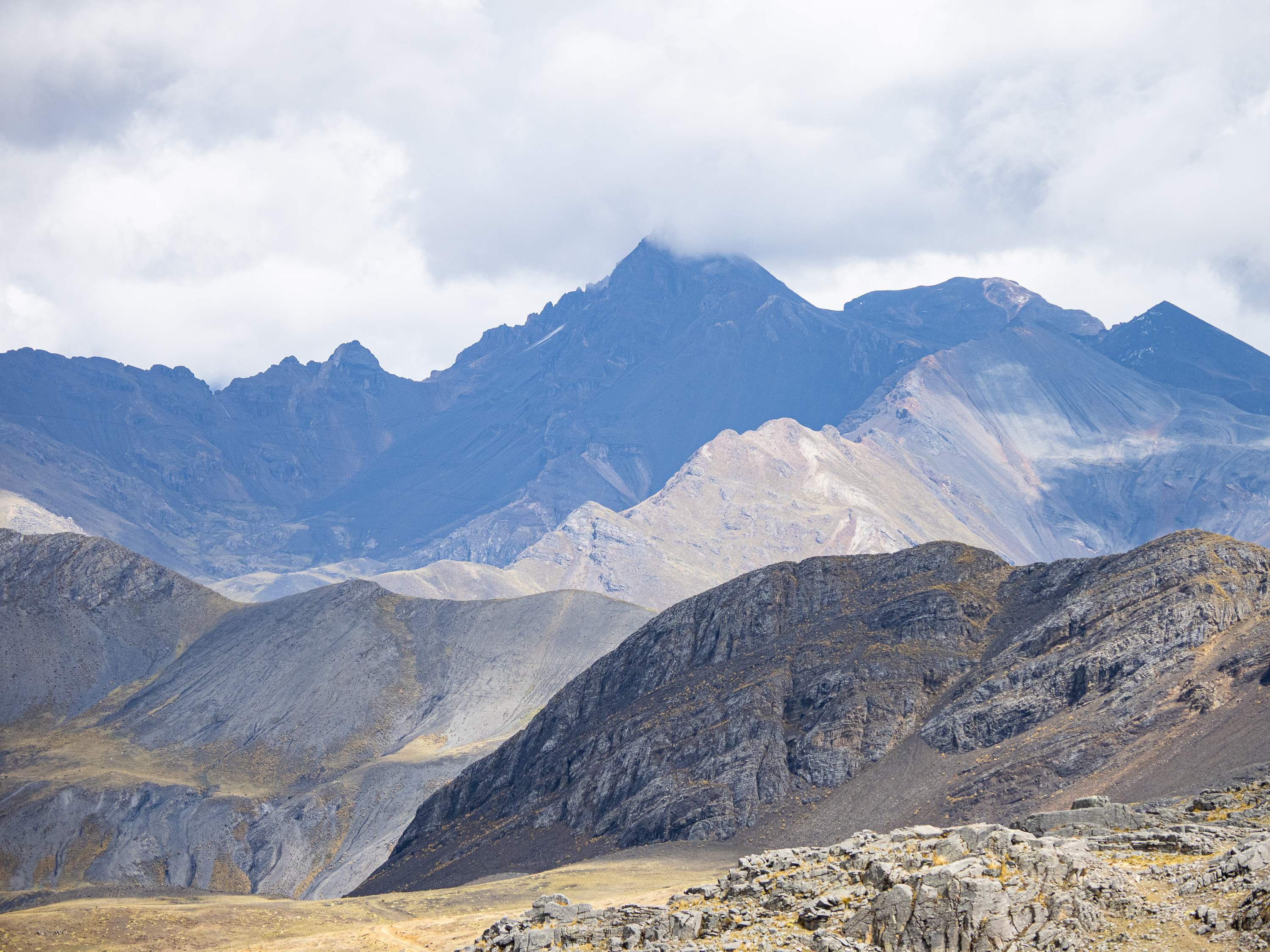 The storm did pass, but it was only a prelude of what was to come. The road continued to wind it’s way through the mountains, while the peaks themselves became increasingly dramatic. Jet black mountains streaked with grey rock falls capped red and pink mineral-rich soil, interspersed with tussock fields. I passed dispersed herds of llamas and alpacas, and the occasional shepherds home. It can’t be an easy life in these remote areas at over 4,500m elevation.