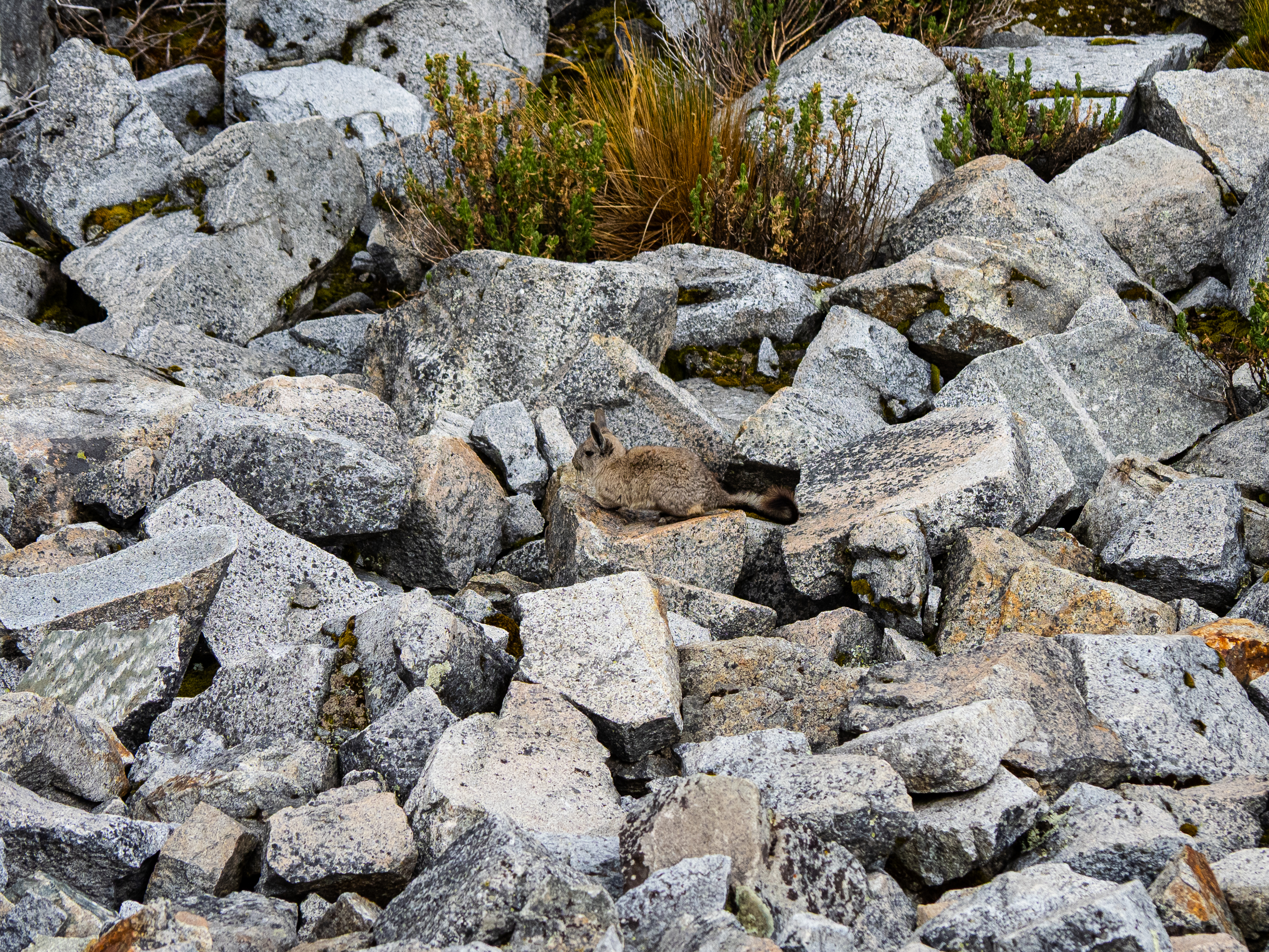 I completed the paved climb and turned off onto a rough dirt road. For the next 12 km, I navigated the rocky terrain, climbing to over 4,700m before descending into a small valley. I saw viscachas scurrying about the scree fields and a few mining trucks, but very few other signs of life.