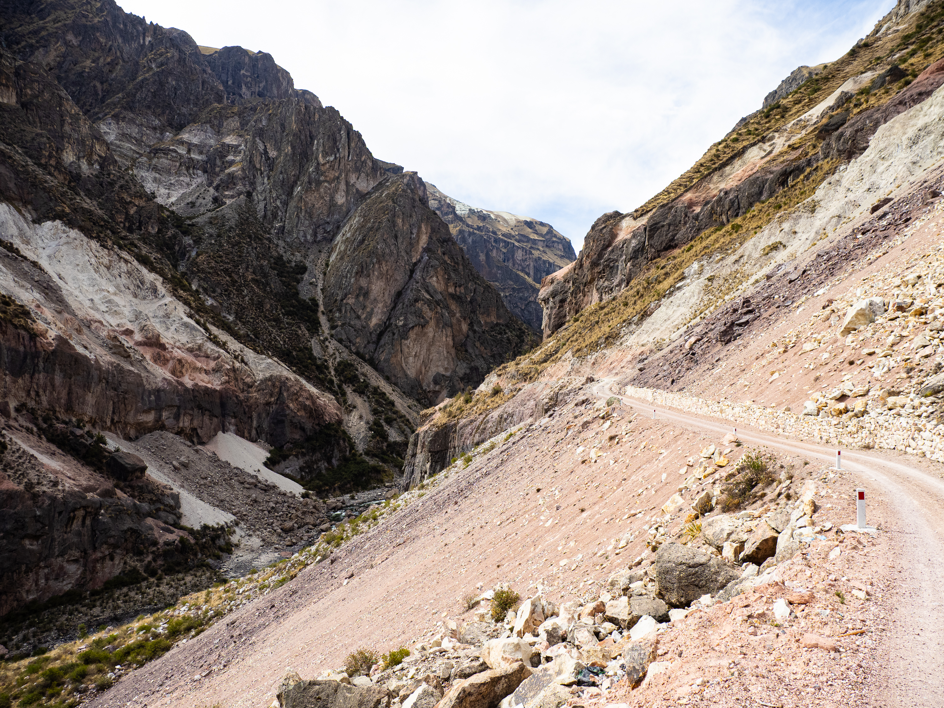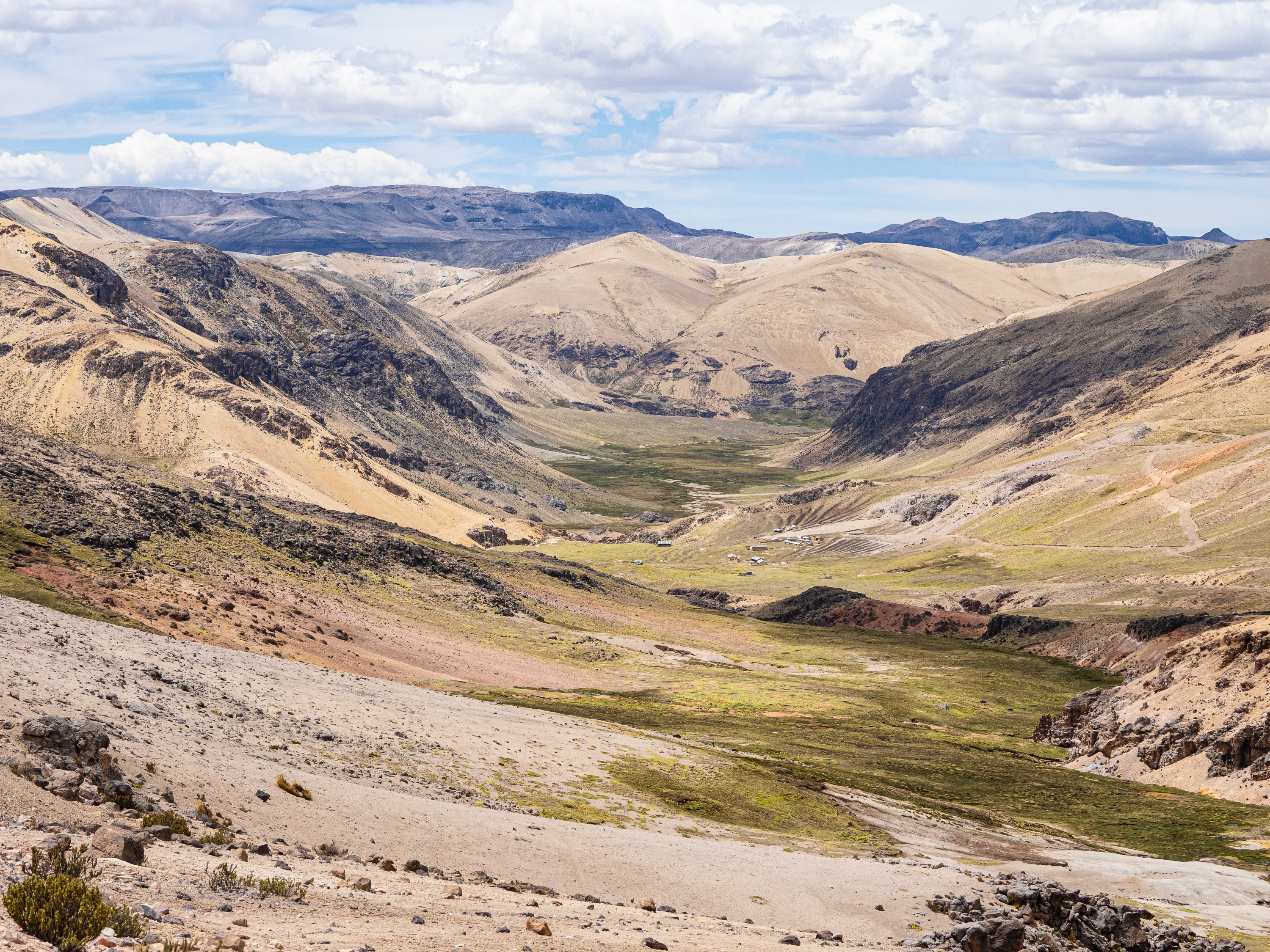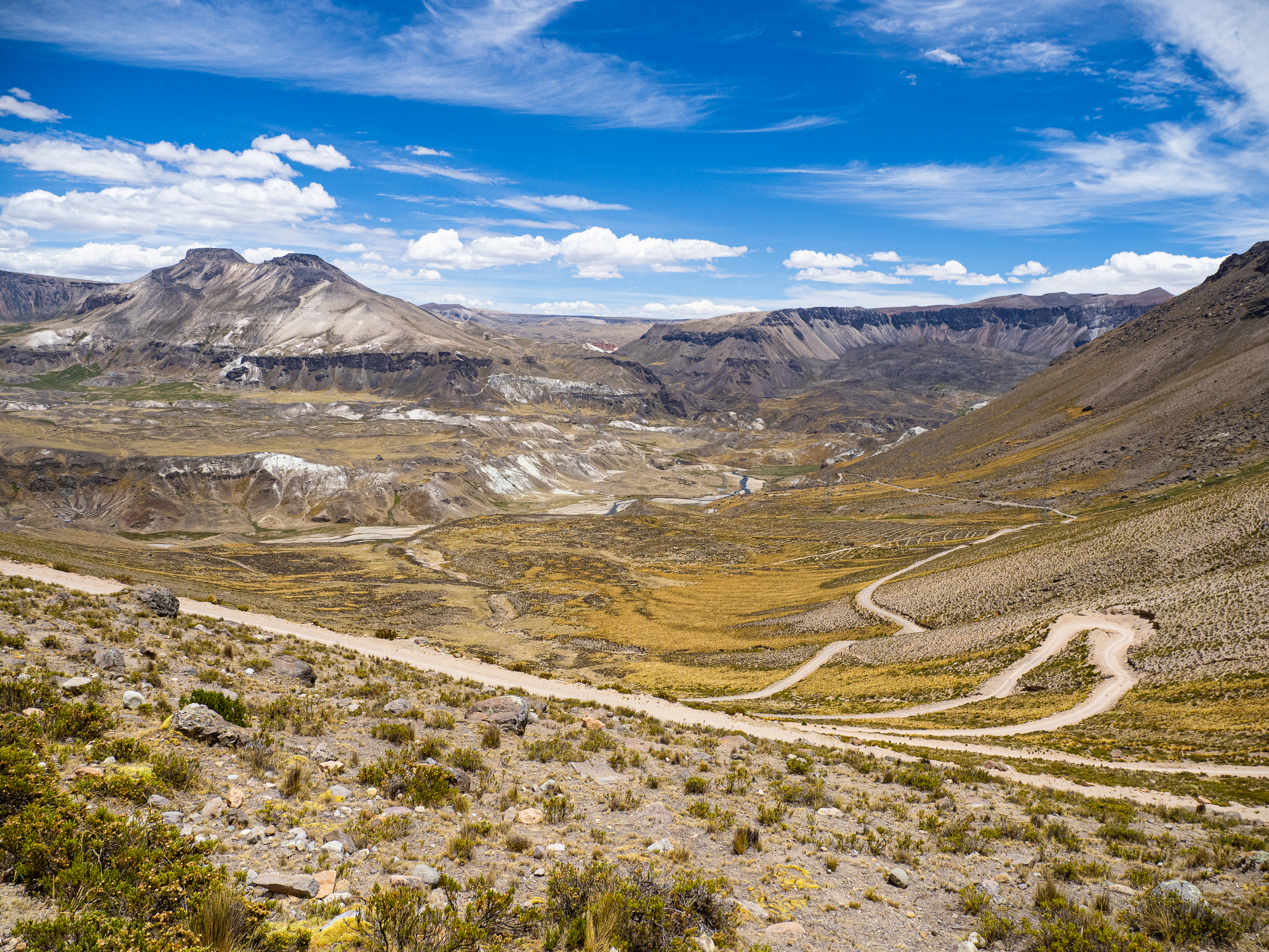 The road took me through yet another beautiful valley. For yet another day, I felt spoiled to have such amazing dirt roads all to myself. The first 20 kilometres was slow going, with the rough road surfaces and endless incredible vistas slowing my progress. Eventually I reconnected with the main mining road and began my descent into the far northern reaches of Cotahuasi Canyon.