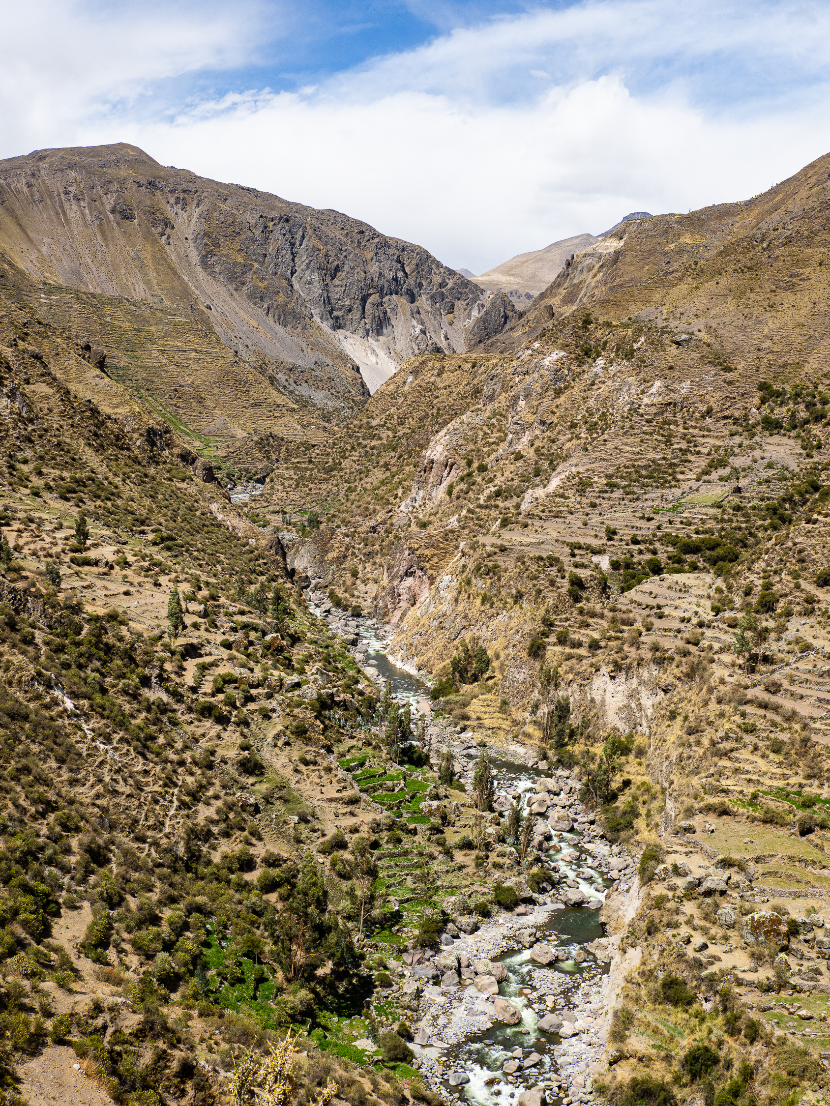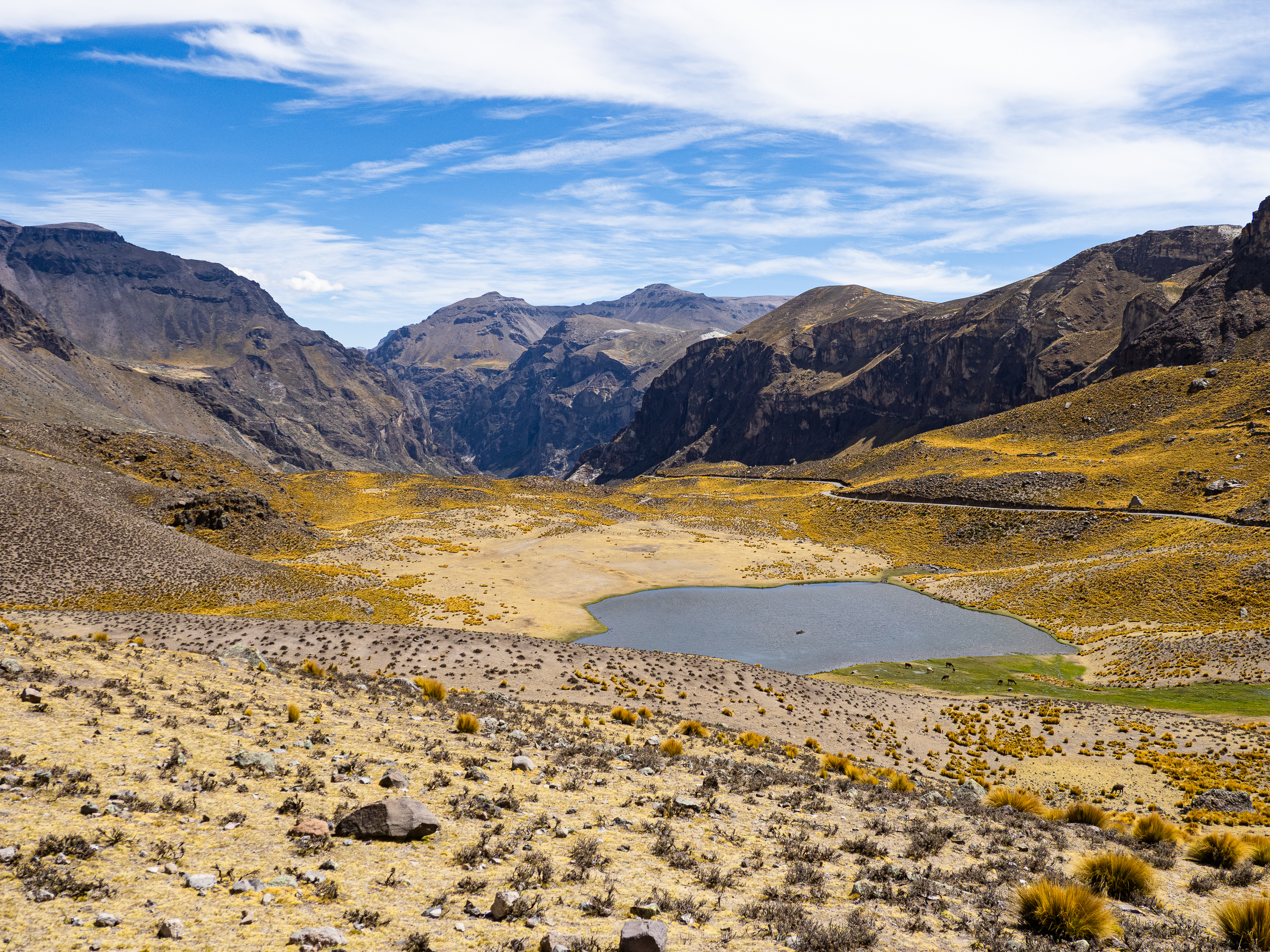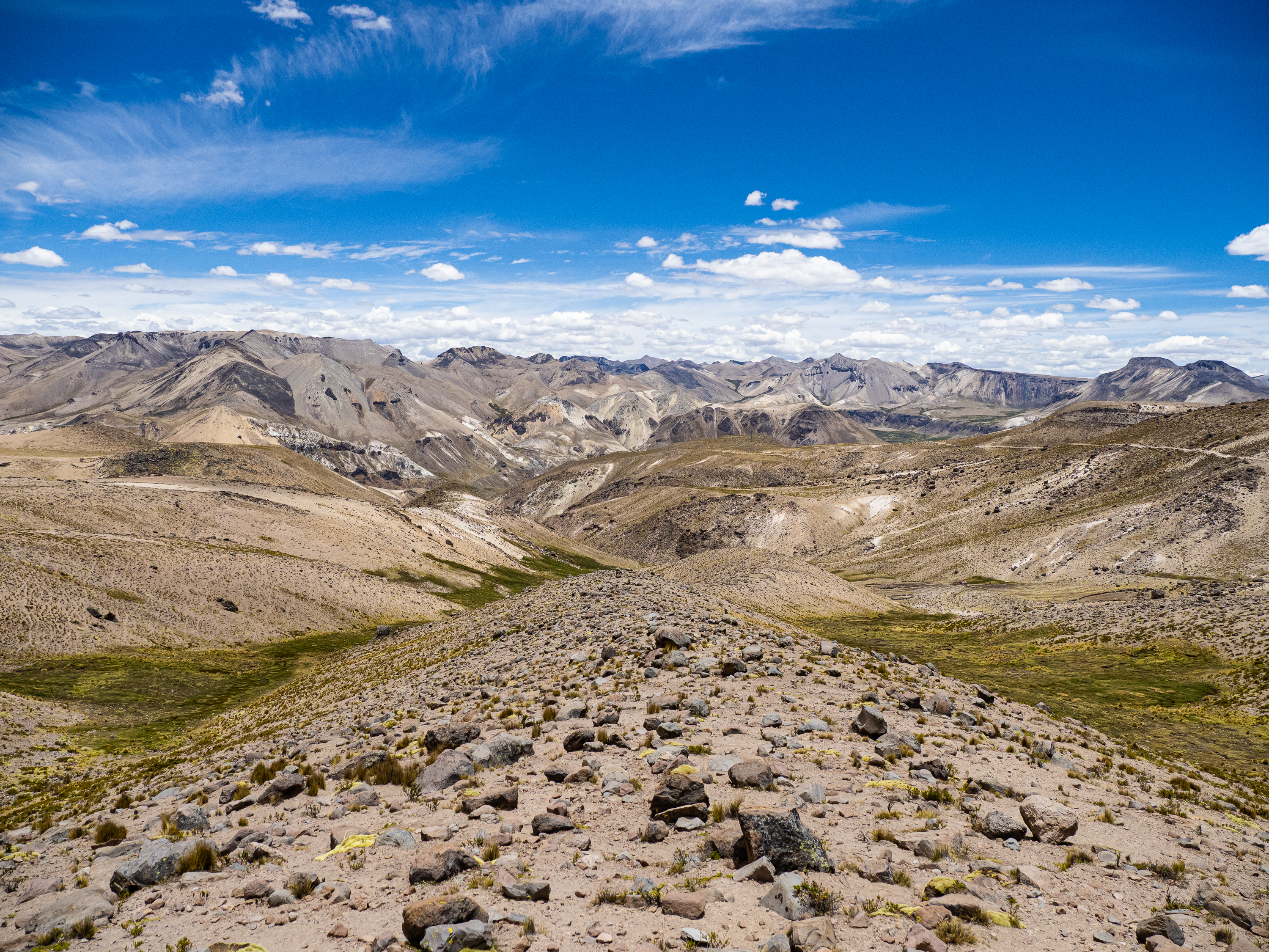 The road took me through yet another beautiful valley. For yet another day, I felt spoiled to have such amazing dirt roads all to myself. The first 20 kilometres was slow going, with the rough road surfaces and endless incredible vistas slowing my progress. Eventually I reconnected with the main mining road and began my descent into the far northern reaches of Cotahuasi Canyon.