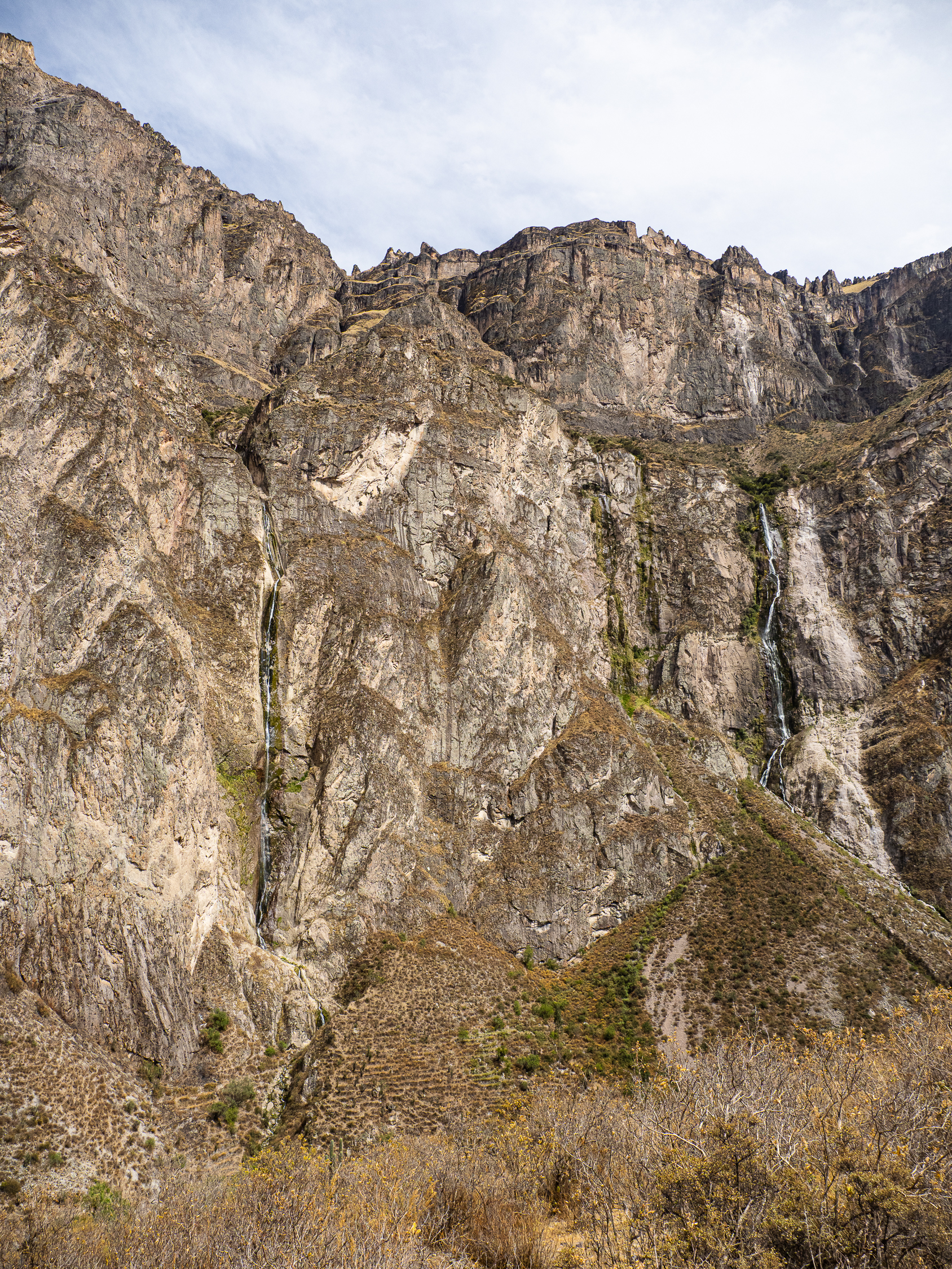 Leaving Cotahuasi, the landscape changes. The fertile valley becomes more arid and more barren. Cacti line the road, except in the occasional spot where the river or a creek provides life. At one such oasis I passed by lush fruit trees and remarkable greenery in an otherwise lifeless location. The road itself was a marvel, etched into the side of cliff and worthy of any “World’s Most Dangerous Roads” list. The precarious curves and gusting afternoon winds meant I had to take it slow, lest I drop off the side.