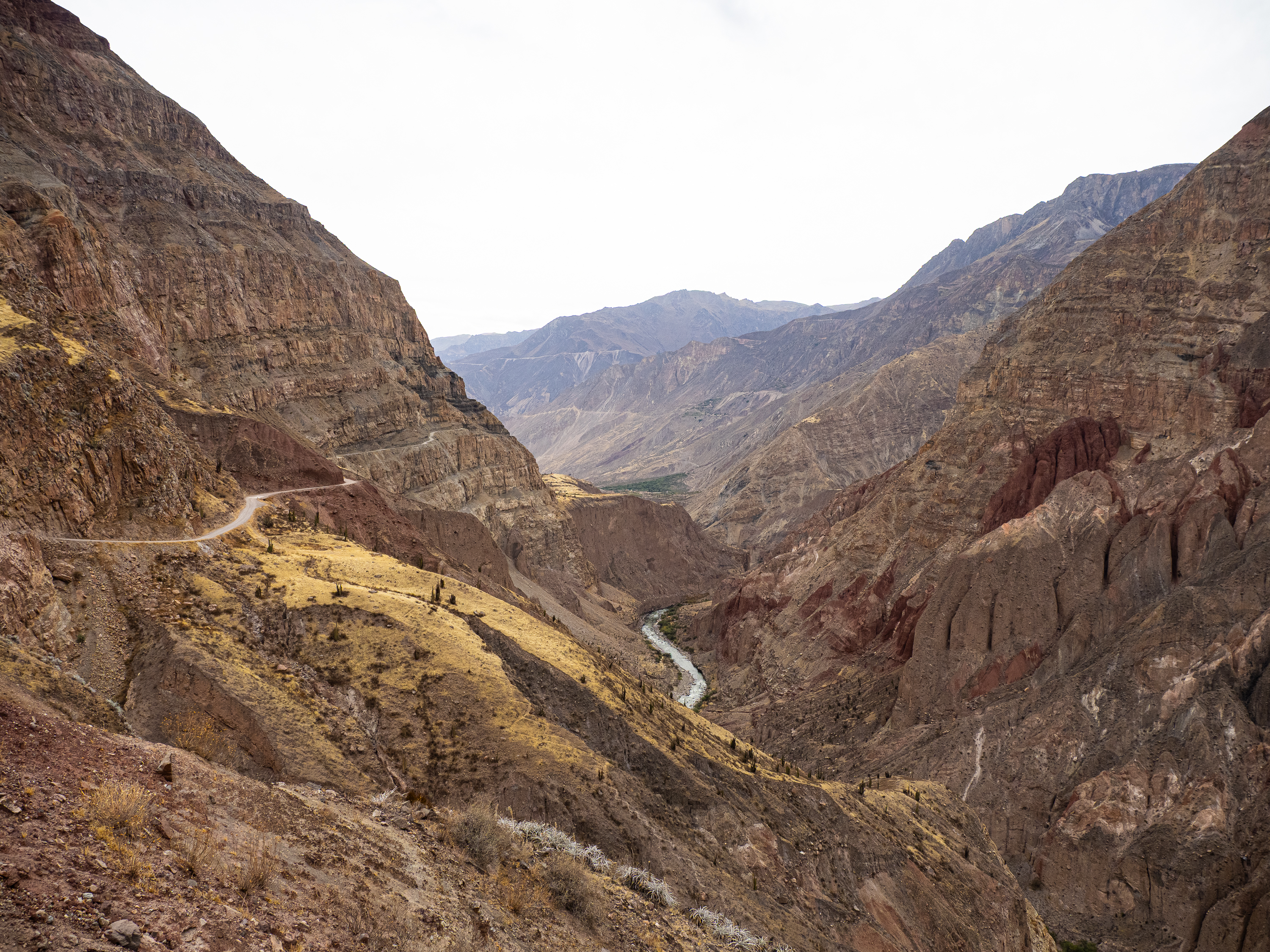 For many, Cotahuasi is the last stop in the canyon. But the road keeps going another 30 km further down, ending at the village of Quechualla at only 1,600 m elevation – 3,200 m below where I started the descent the previous day.