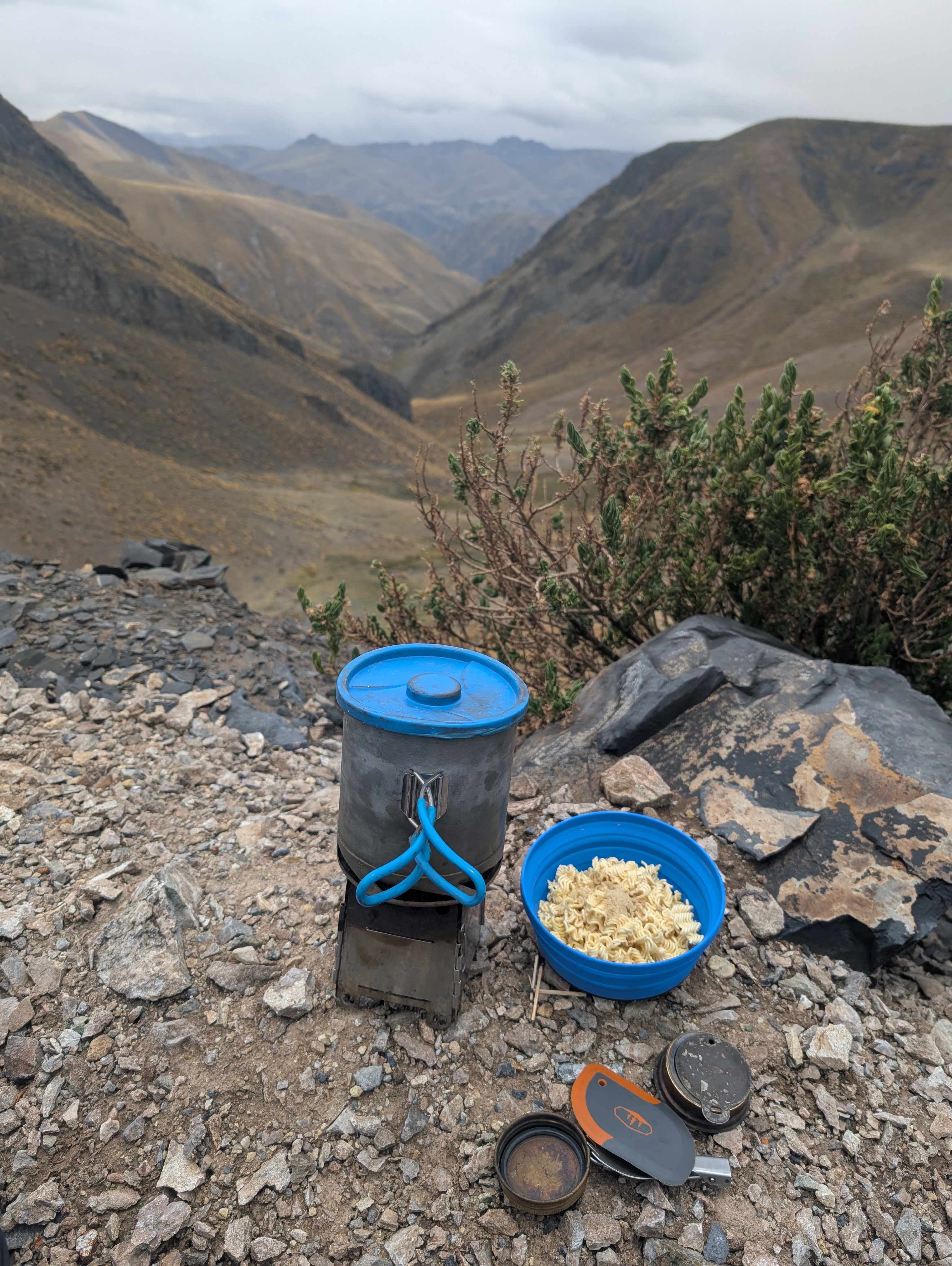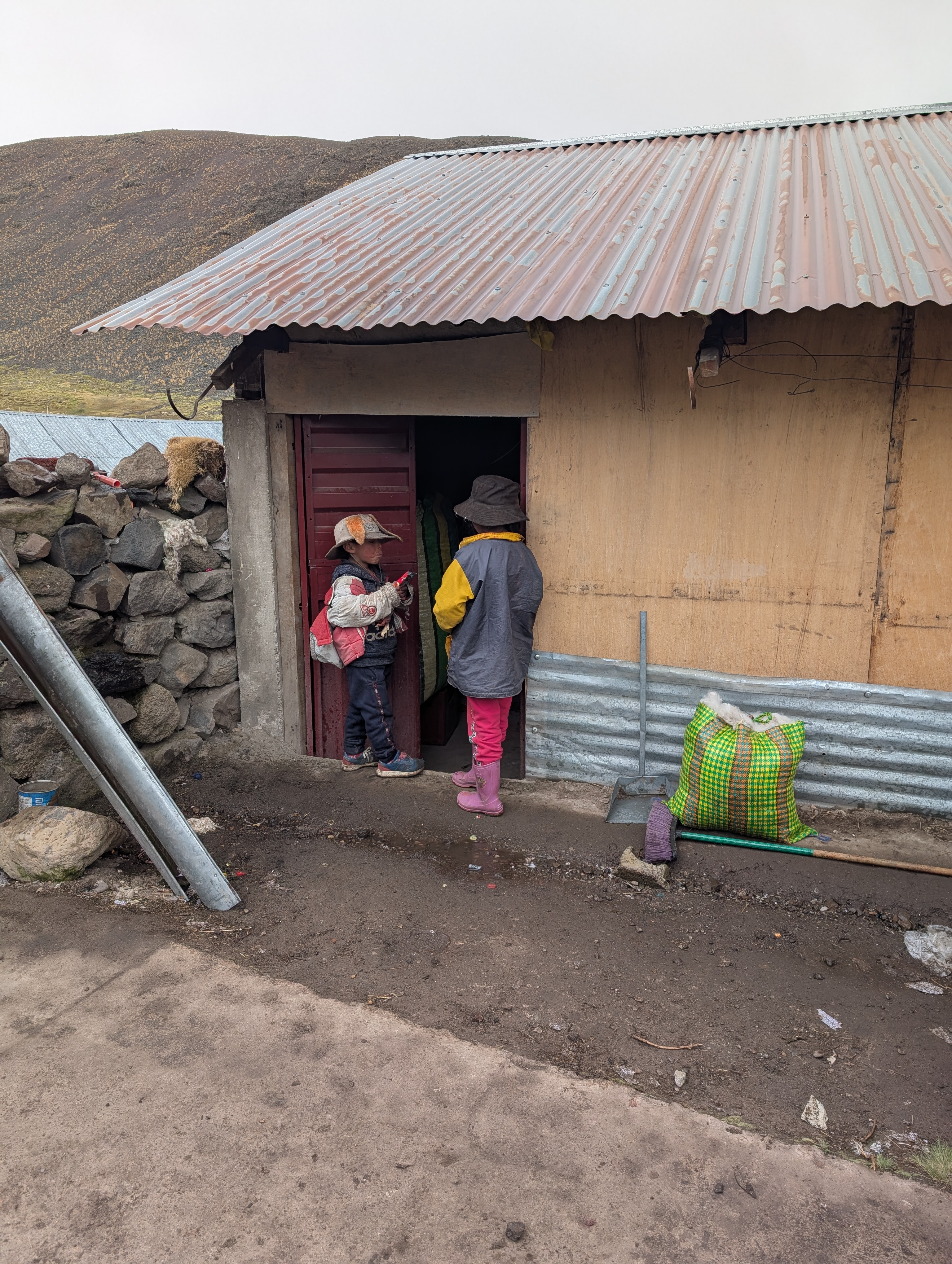 Having survived the storm, I descended a few hundred metres into the next valley, where my map showed there was a health clinic and school. While the clinic was closed, I was invited to sleep outside a shepherd’s home. It was Sunday and he was hosting a small gathering of local families. I could have kept going and camped higher up on the plateau, but I didn’t want to risk getting caught in another storm. Instead I enjoyed a glass of fermented corn beverage and settled into my tent. I was mostly ignored as the locals enjoyed the warmth inside and the kids eyed me curiously or suspiciously. I was happy to eat my dinner accompanied by the local scraggly dogs.