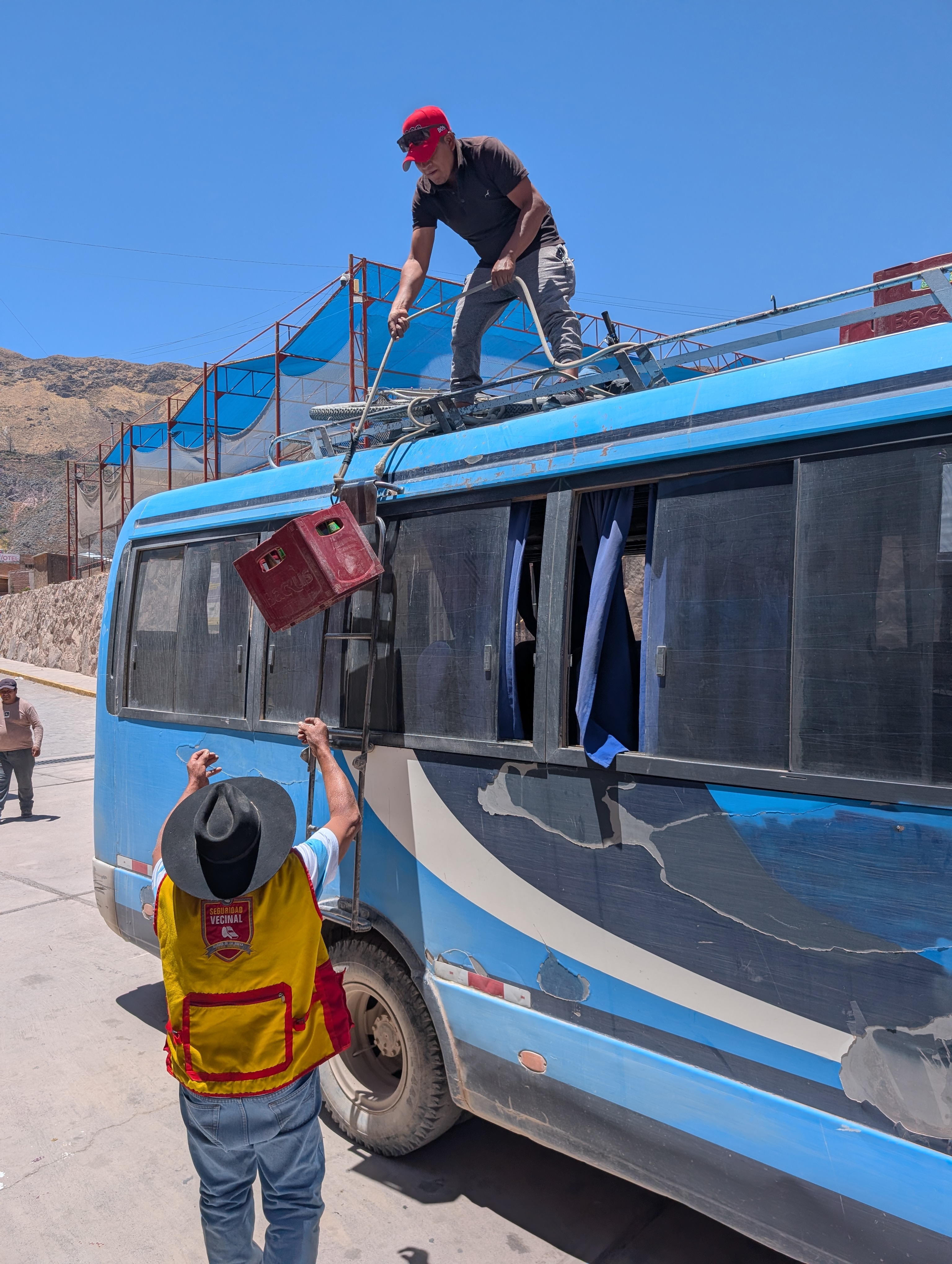 Come morning, I had a great breakfast before hopping the bus back to Cotahuasi town with my bike strapped to the roof. It was scarier to drive that road than to ride it, but we made it safely to town after picking up many locals along the way.